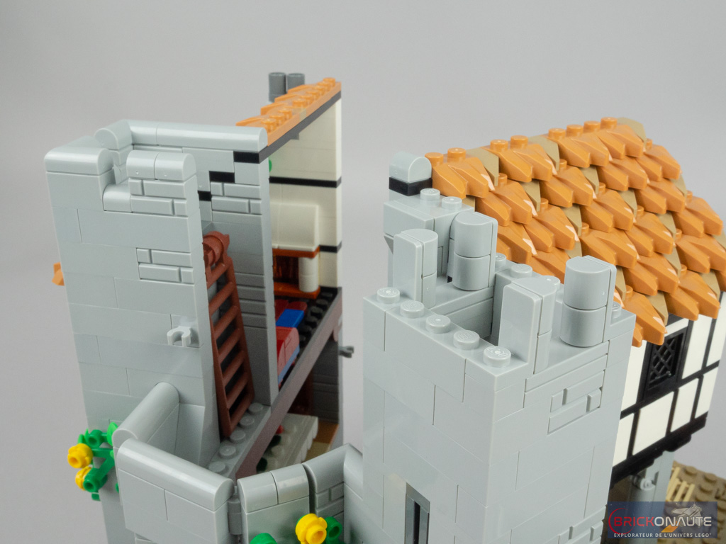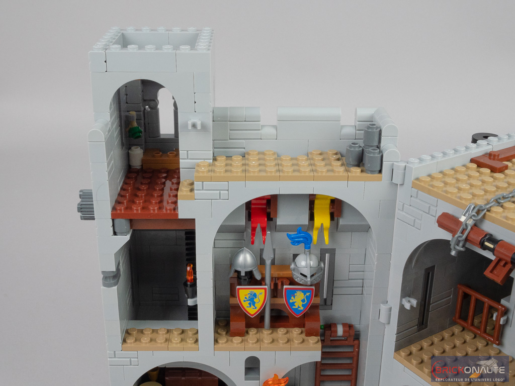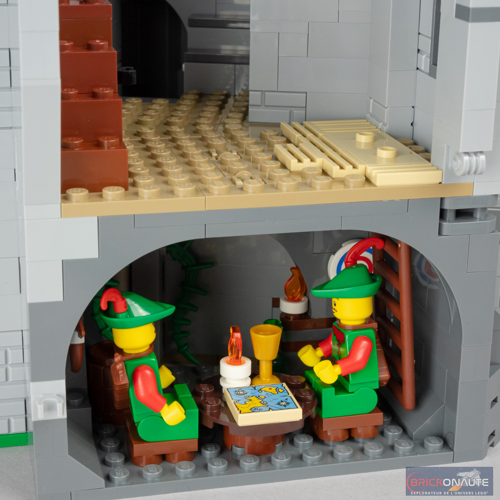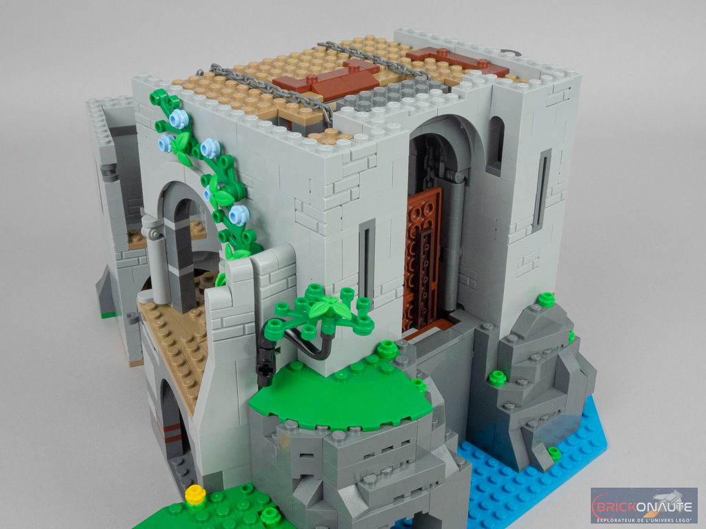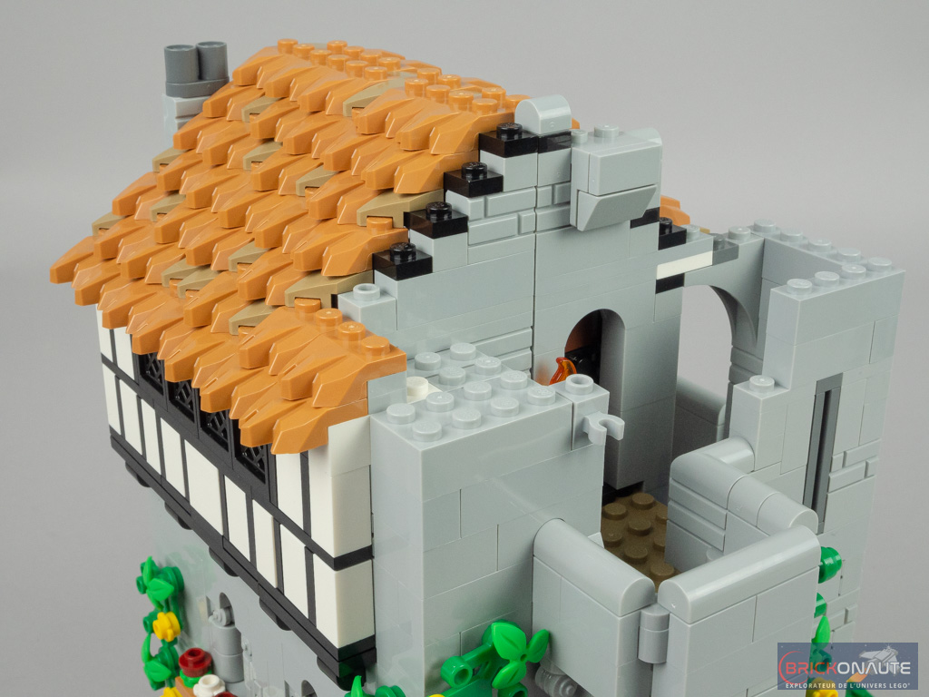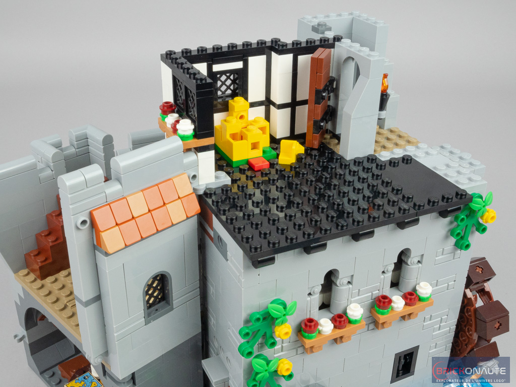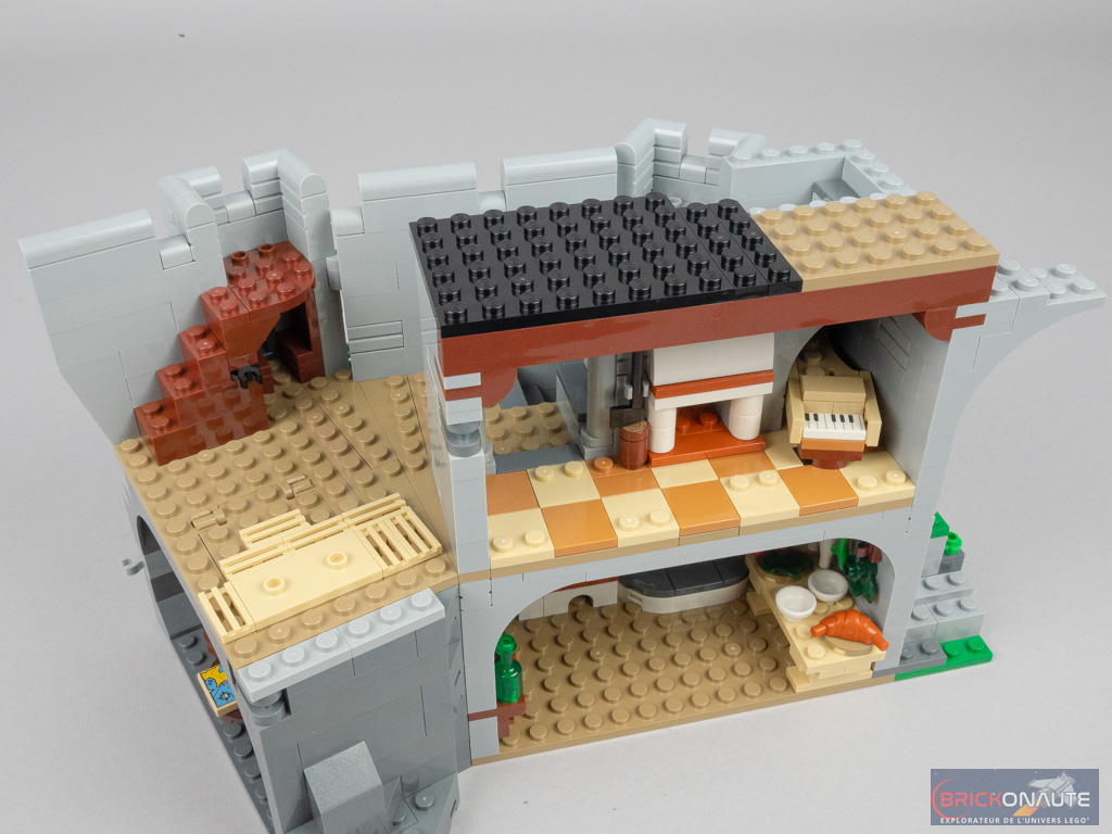 Si vous recherchiez une expérience de construction fidèle aux sets de l’époque, passez votre chemin. Si par contre vous aimez les techniques inventives, vous serez très certainement ravis. Du SNOT, des angles improbables, des joints divers et variés, des mécanismes… difficile de s’ennuyer au fil de la douzaine d’heures nécessaire à l’assemblage. On alterne entre les phases de construction des murs, des créneaux ou des intérieurs : la monotonie n’a pas le temps de s’installer. Petit bémol néanmoins pour l’une des toutes dernières étapes, avec l’assemblage des créneaux des deux plus grandes tours : une étape ultra répétitive et plutôt casse-pieds (pour rester poli !).