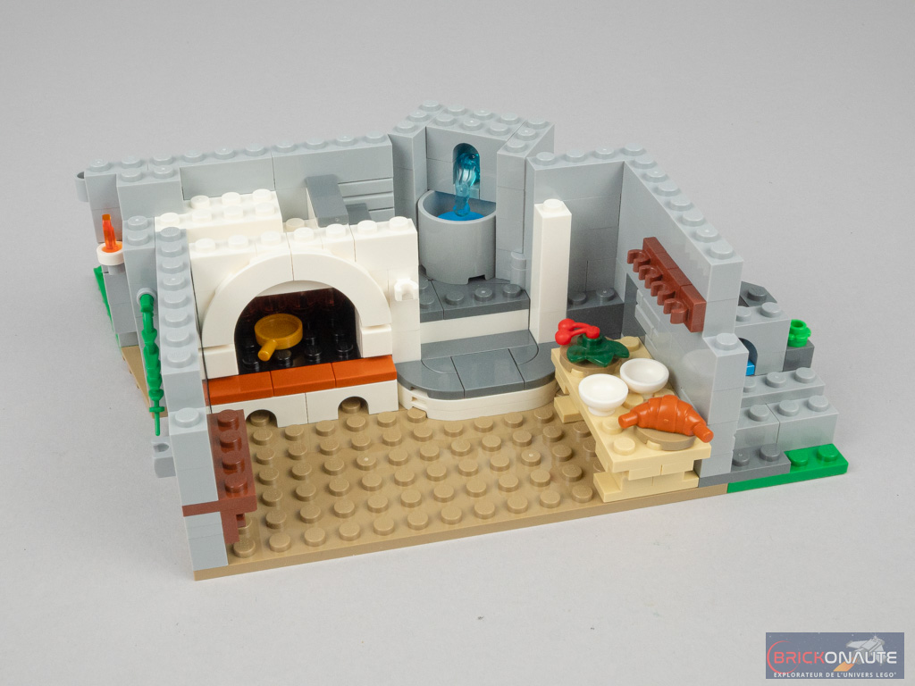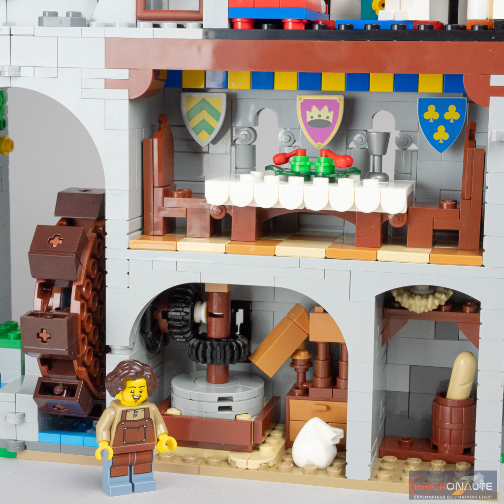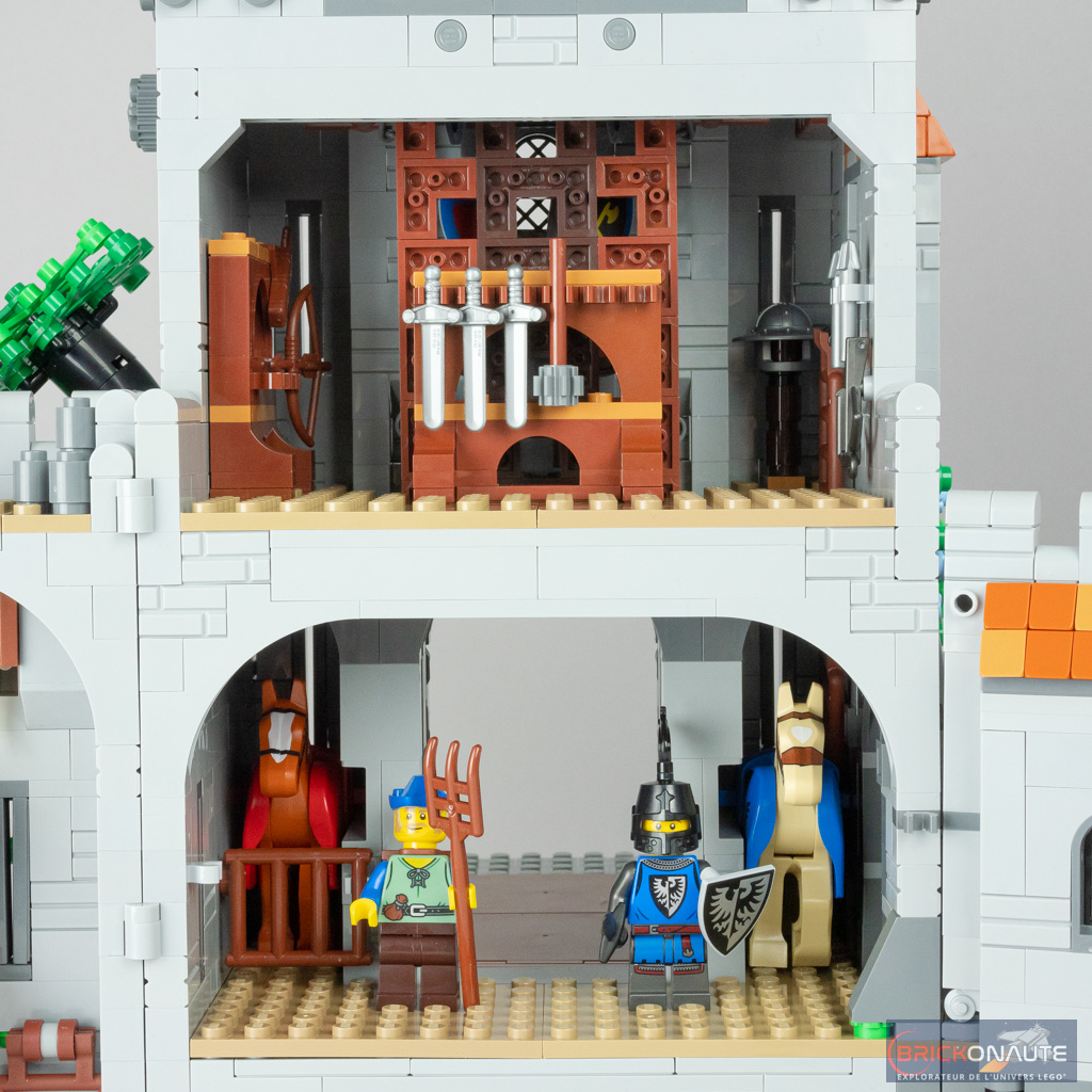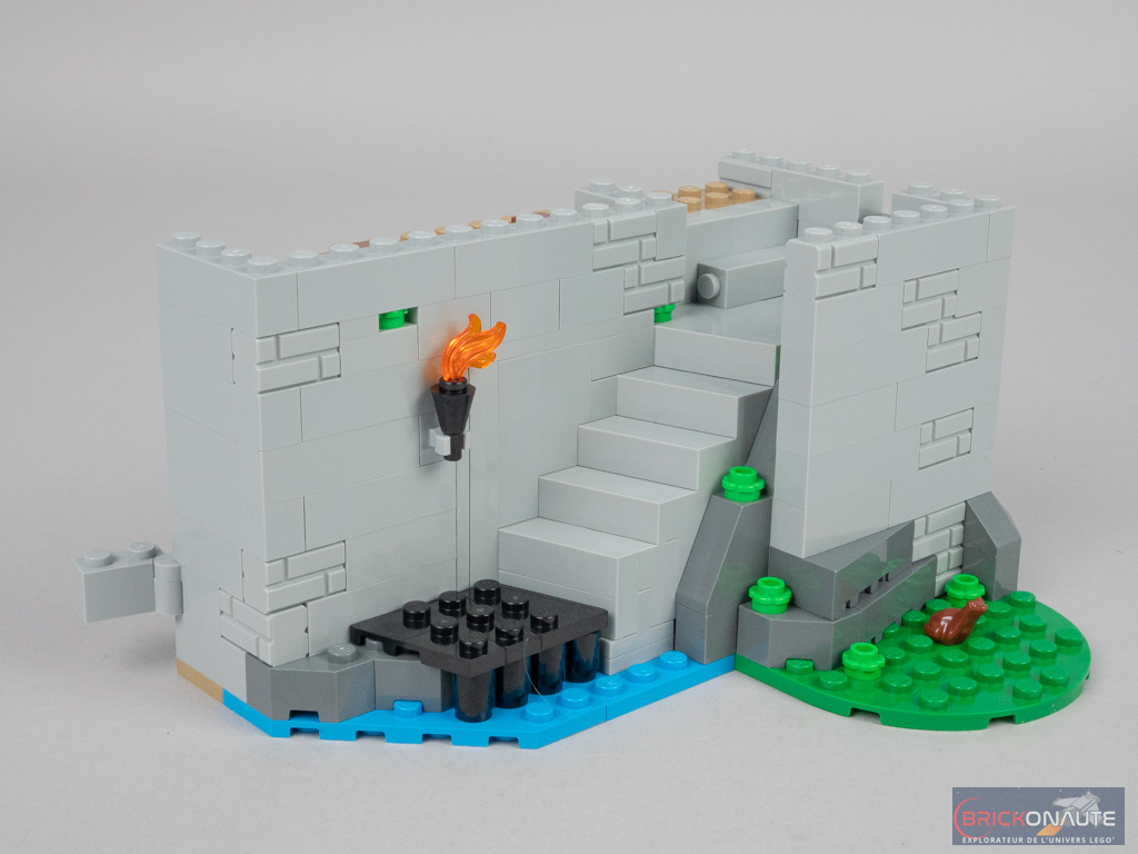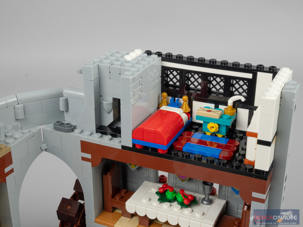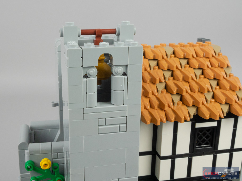 Si vous recherchiez une expérience de construction fidèle aux sets de l’époque, passez votre chemin. Si par contre vous aimez les techniques inventives, vous serez très certainement ravis. Du SNOT, des angles improbables, des joints divers et variés, des mécanismes… difficile de s’ennuyer au fil de la douzaine d’heures nécessaire à l’assemblage. On alterne entre les phases de construction des murs, des créneaux ou des intérieurs : la monotonie n’a pas le temps de s’installer. Petit bémol néanmoins pour l’une des toutes dernières étapes, avec l’assemblage des créneaux des deux plus grandes tours : une étape ultra répétitive et plutôt casse-pieds (pour rester poli !).