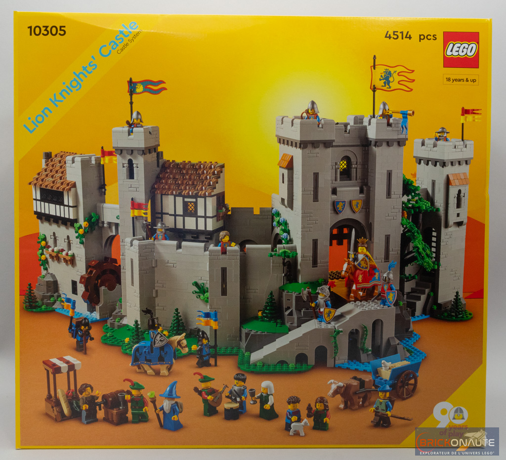 Après mon test du set LEGO Icons 10497 Galaxy Explorer – dont j’ai pu vous dire tout le bien que je pensais dans cet article – place au gros morceau des deux sets sortis à l’occasion du 90ème anniversaire de la marque. Il s’agit cette fois d’un hommage à l’autre gamme emblématique du fabricant : l’univers médiéval du fameux Castle System, ses châteaux et les personnages qui les accompagnent. LEGO nous indique s’être inspiré du set 6080 King’s Castle, sorti en 1984. Mais si le Galaxy Explorer rappelle de façon évidente son illustre ancêtre, on en est ici clairement plus éloignés. C’est parti pour un (gros) test du (gros) set LEGO Icons 10305 Lion Knights’ Castle, ou le Château des Chevaliers du Lion en bon français.