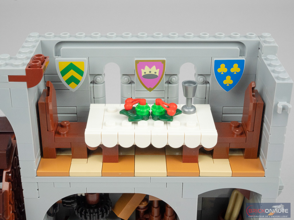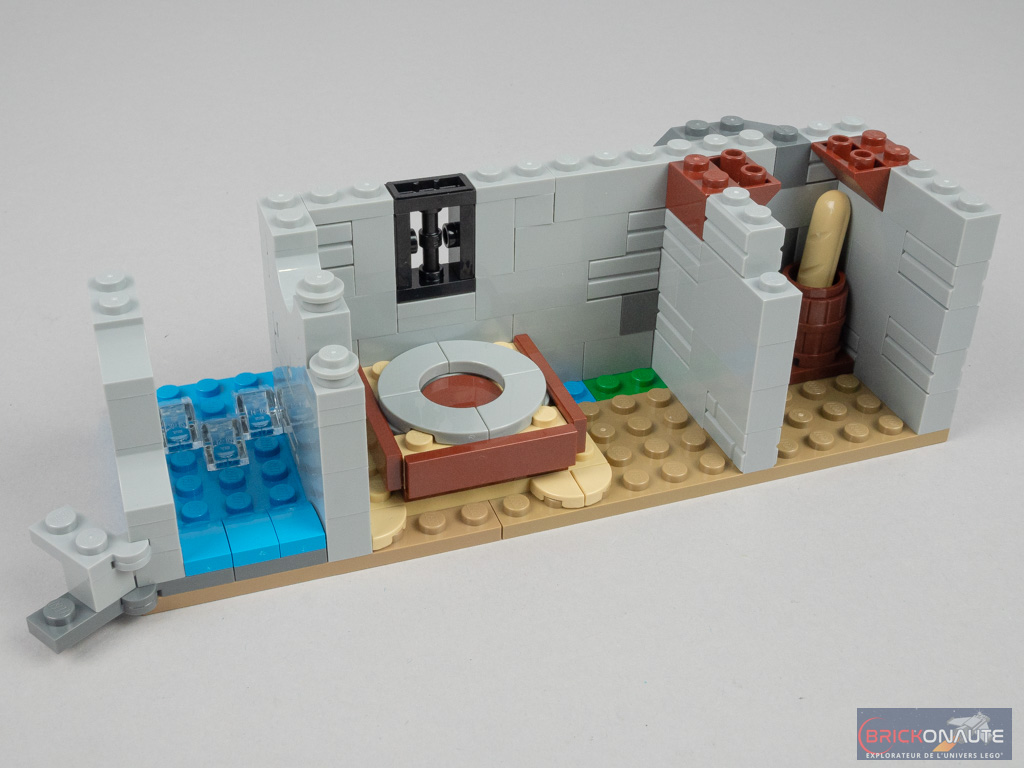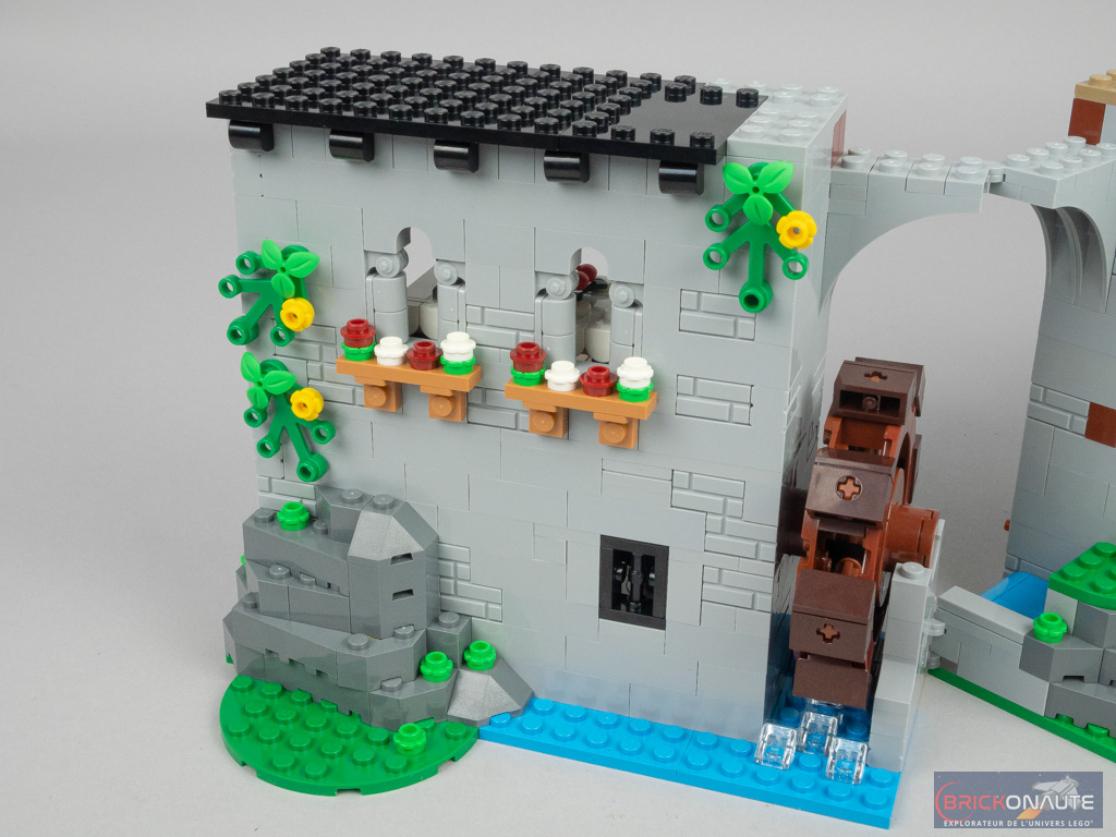 Si vous recherchiez une expérience de construction fidèle aux sets de l’époque, passez votre chemin. Si par contre vous aimez les techniques inventives, vous serez très certainement ravis. Du SNOT, des angles improbables, des joints divers et variés, des mécanismes… difficile de s’ennuyer au fil de la douzaine d’heures nécessaire à l’assemblage. On alterne entre les phases de construction des murs, des créneaux ou des intérieurs : la monotonie n’a pas le temps de s’installer. Petit bémol néanmoins pour l’une des toutes dernières étapes, avec l’assemblage des créneaux des deux plus grandes tours : une étape ultra répétitive et plutôt casse-pieds (pour rester poli !).
