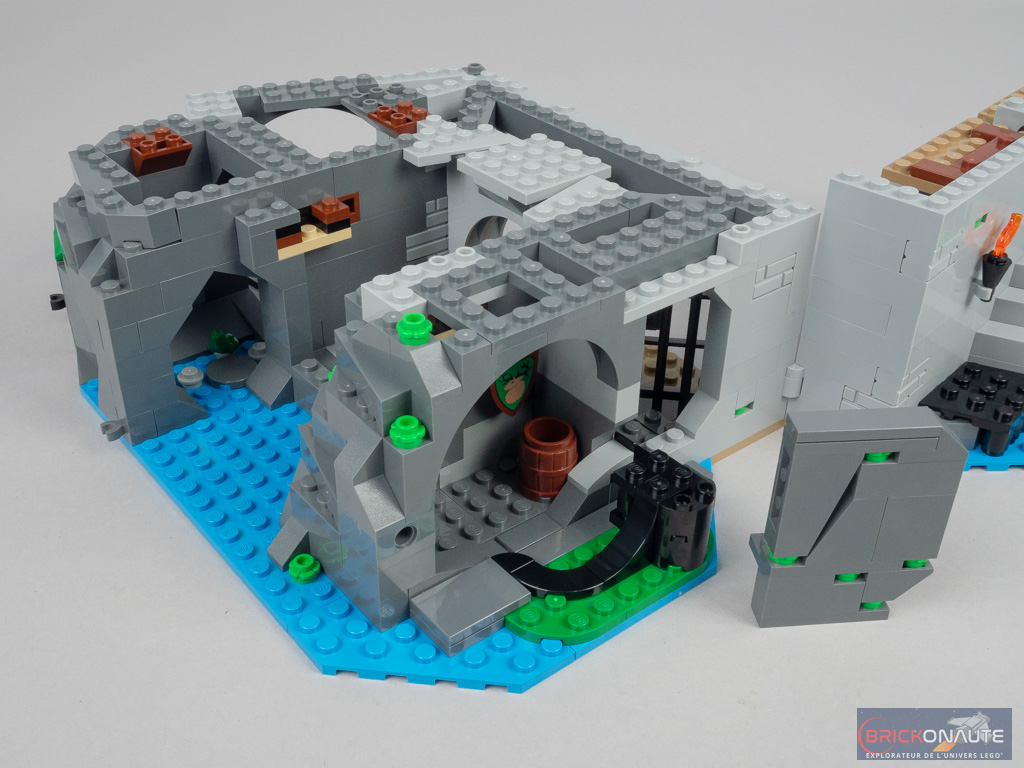 Nous continuons sur ce même module en élevant les parois pour constituer notamment plusieurs arches, futurs chemins d’accès au repaire caché des Forestmen. Côté extérieur, ce sont quelques rochers posés dans l’eau. Côté intérieur, on assemble deux cavernes peuplées de chauves-souris et un repaire caché contenant l’insigne des Forestmen ainsi que quelques armes.