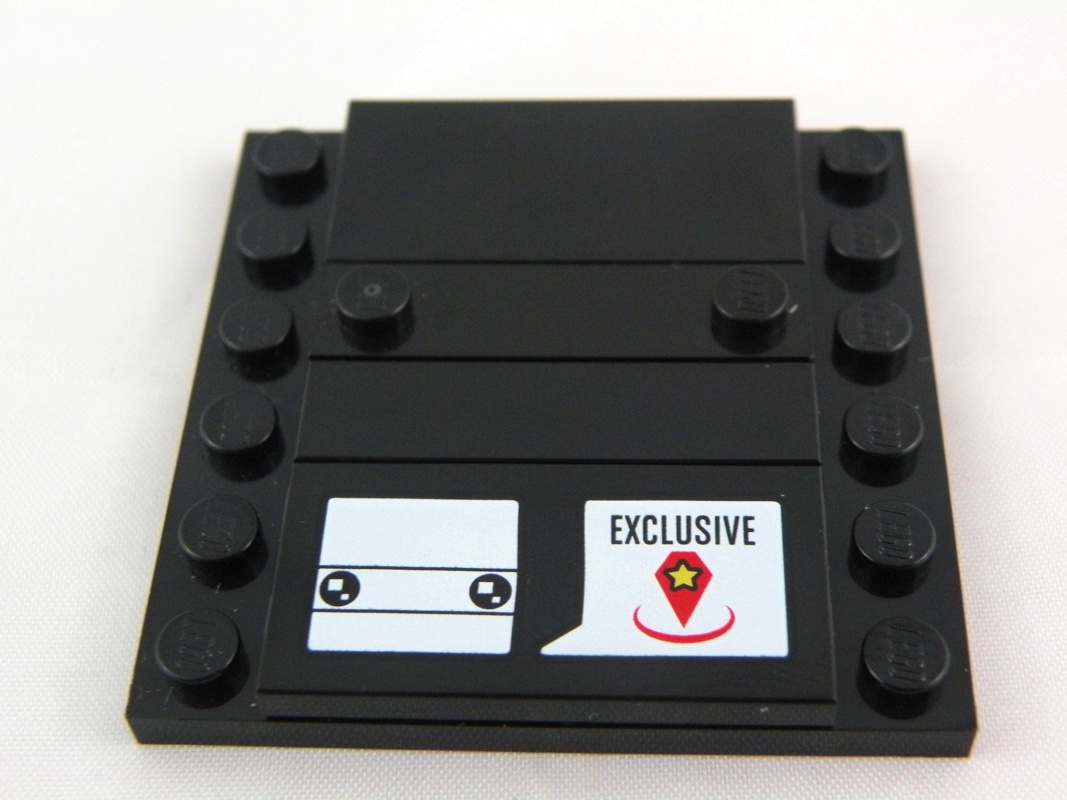 Sur l’avant de la boîte, Lloyd nous est présenté sans son socle sur fond gris, avec une estampe de ce qu’on devine être un dragon. Contrairement à Finn, ici pas de logo de l’univers The LEGO Ninjago Movie. Par contre, on retrouve bien en bas à droite le nom du modèle, et son numéro 17 surmonté de la mention « Exclusive ». Ici, elle s’explique par le fait que les deux BrickHeadz basées sur le film ont un temps été une exclusivité chez Toys R Us, aux Etats-Unis. Mais heureusement pour nous, elles ne le sont pas restées longtemps.