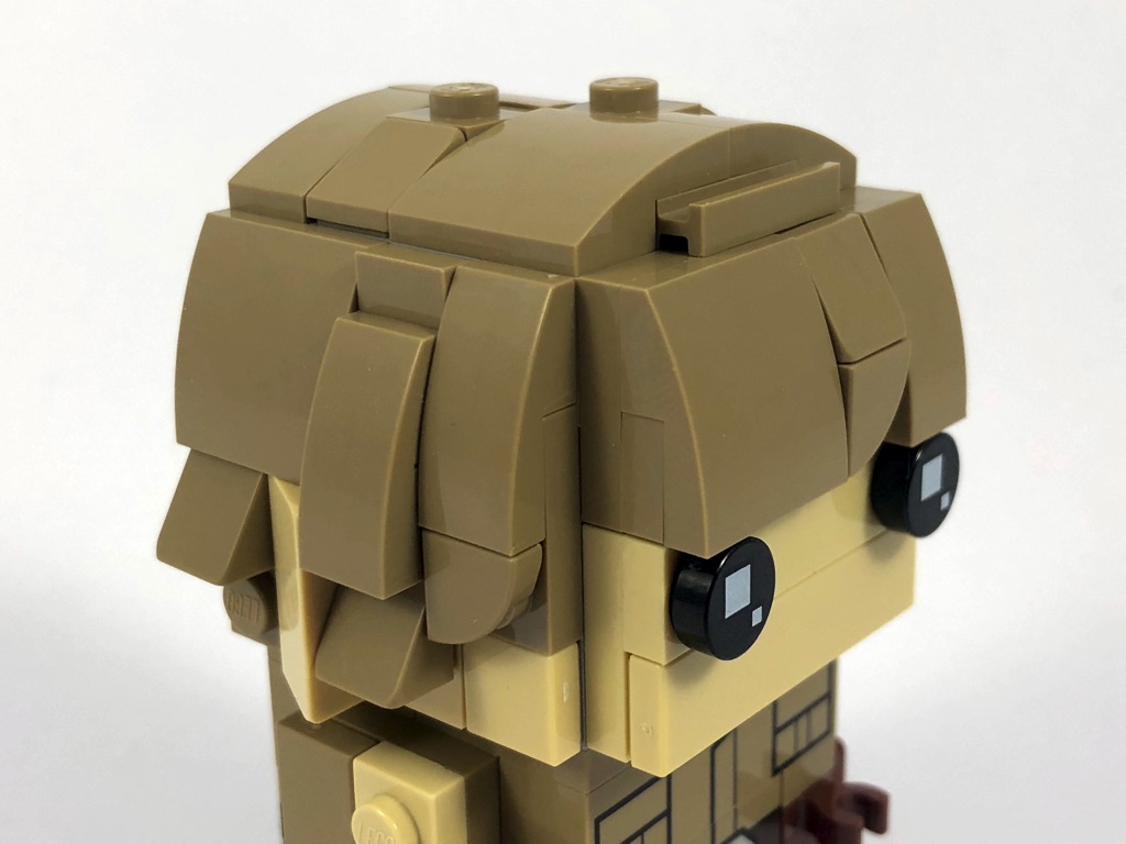 Nous continuons logiquement avec Luke Skywalker, dont la construction est plutôt classique également. On notera une structure interne de la tête légèrement différente de celle trouvée d’habitude, nécessaire pour la réalisation de la chevelure. Celle-ci est plutôt bien réalisée, avec l’utilisation de jumpers sur les côtés pour décaler la construction d’un demi-tenon. Un clip permet de fixer la poignée du sabre laser tandis que Luke tient un blaster dans l’autre main. Une « lame » de sabre laser est d’ailleurs fournie, si vous souhaitez changer d’arme. Un bracket permet également de disposer une poche au niveau de la jambe droite.