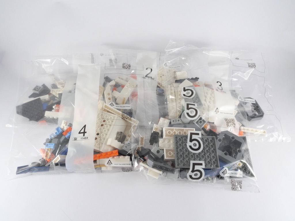 À l’intérieur, nous trouvons 5 sachets de pièces numérotés, une (grosse) planche de stickers, et 4 notices d’instructions. Soit une notice par sachet, à l’exception des n°3 et 4 rassemblés dans la même notice : vous pourrez donc partager l’expérience de construction.