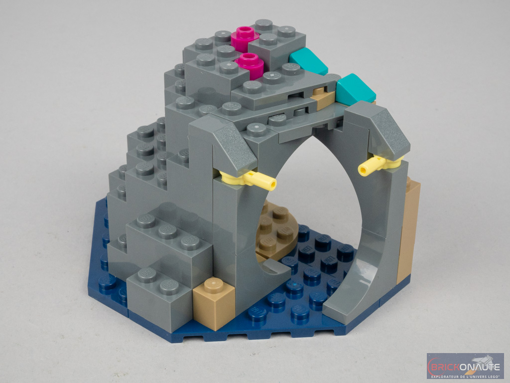 Le designer a pris le soin d’intégrer de nombreux points d’attache pour les minifigs et la jolie raie, grâce à des petits éléments transparents. L’un des récifs dispose également d’un axe Technic en son centre pour y fixer le sous-marin – il peut d’ailleurs être fixé dans les deux sens. C’est plutôt intelligent pour qui voudrait créer une petite mise en scène statique et exposer l’ensemble. C’est moins pertinent pour un jeune qui voudrait simplement s’amuser avec le set.