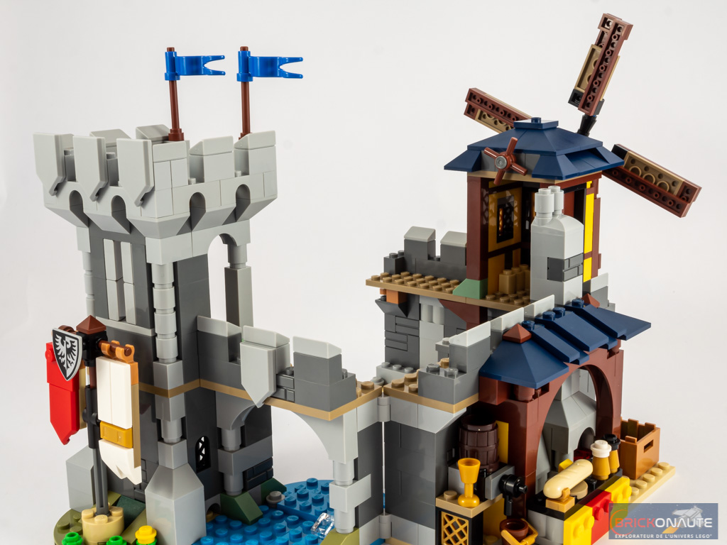 Evoquons rapidement les deux modèles « secondaires ». Au-delà de leur défaut principal que j’évoquais en introduction de ce verdict, j’ai personnellement une large préférence pour la tour de guet et son trébuchet plutôt que pour la place de marché médiévale. La tour propose des détails franchement sympathiques à tous les étages : un passage secret au pied, de jolies portes ouvragées pour l’accès principal, des gargouilles, un jeune dragon, un observatoire / laboratoire d’alchimie… Il y a tout ce qu’il faut. Sans oublier le trébuchet qui fonctionne plutôt bien, mais qui aurait peut être mérité de meilleures finitions notamment pour masquer les éléments Technic.