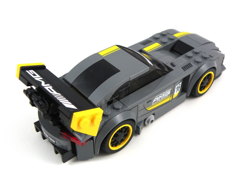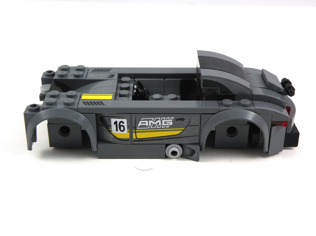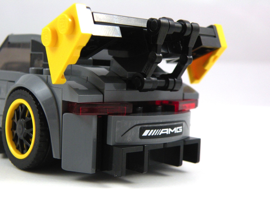 De belles astuces de construction sont présentes, comme souvent dans ces modèles qui peuvent paraître limités avec leurs 6 tenons de large : les feux arrière ou la fixation de l’aileron en sont de très bons exemples.