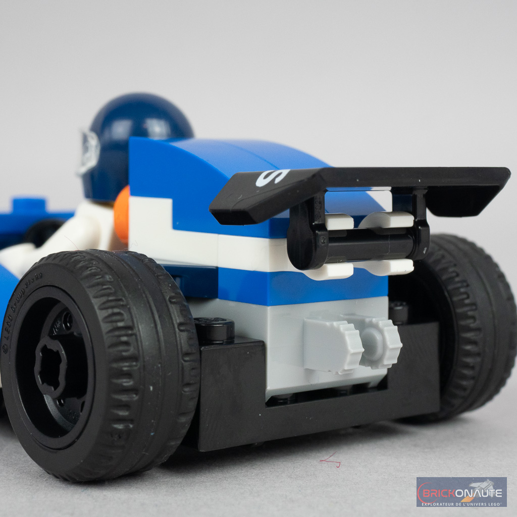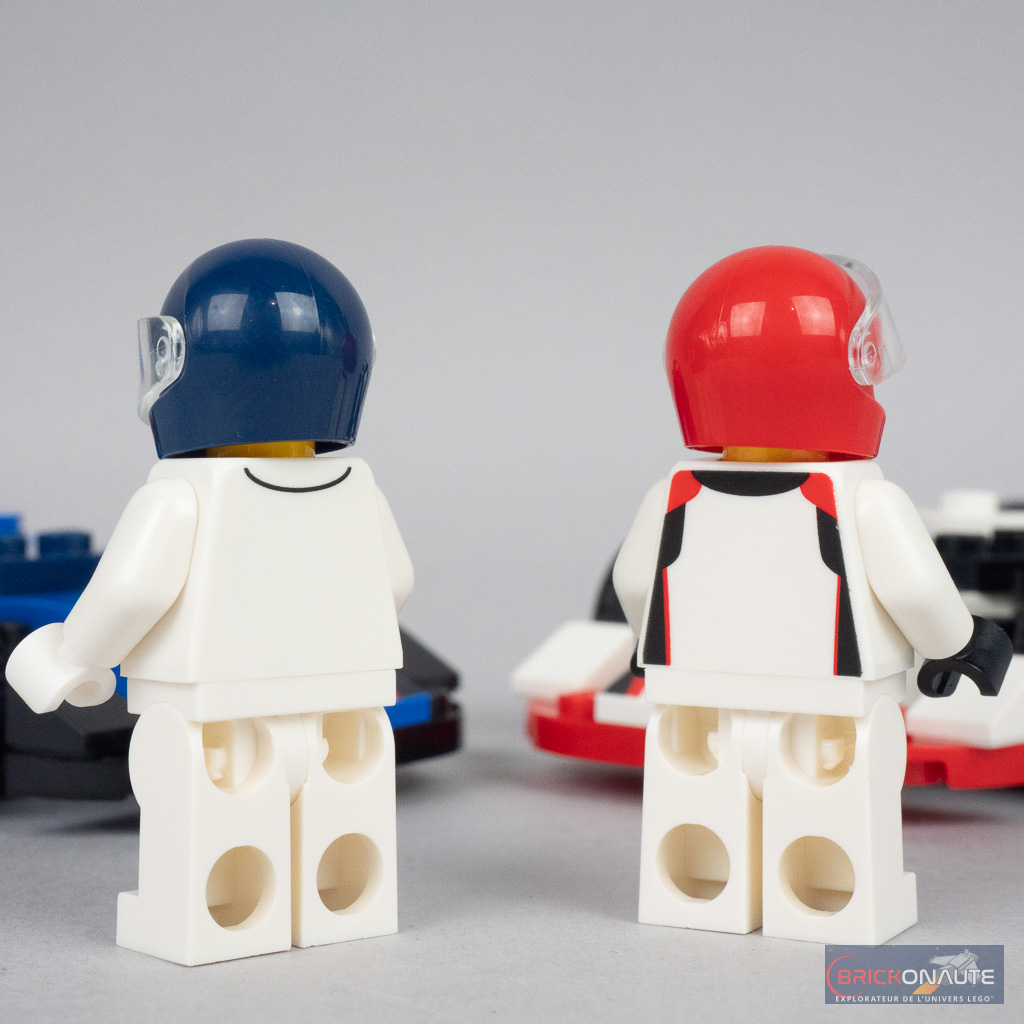 À l’arrière, on remarquera un crochet qui les rend compatibles avec le système « d’éjection » du set 60444 F1 Garage & Mercedes-AMG & Alpine Cars (mon test à cette adresse). C’est une bonne idée, surtout si ces jeunes pilotes en herbe ont un grand frère / une grande soeur qui a la chance de posséder le set en question, ils pourront ainsi jouer ensemble.