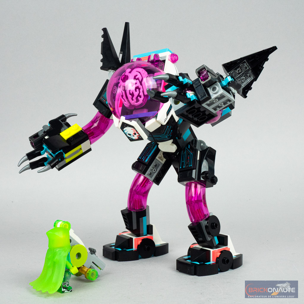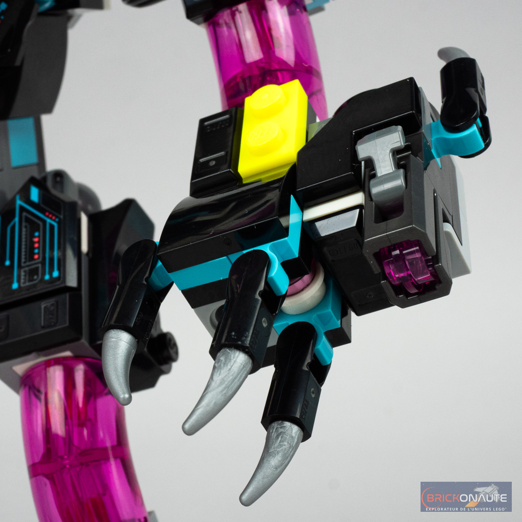 Un petit mot pour terminer au sujet du modèle alternatif, le robot scorpion Cyber cerveau dont vous retrouverez l’image officielle ci-dessous. Si j’ai pris l’habitude de critiquer les sets LEGO DREAMZzz pour ne pas être vraiment des sets « 2 en 1 », celui-ci fait exception à la règle avec une construction vraiment différente du modèle « principal ». Je ne suis pas spécialement fan du design des pattes, mais l’idée de lui attacher les deux stud shooters au bout de la queue est une vraie bonne idée.