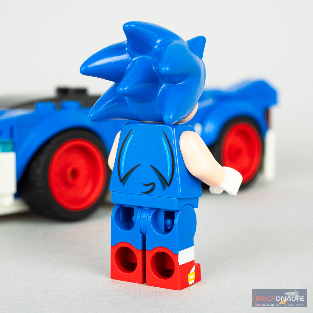 Une seule minifig de fournie et c’est Sonic himself qu’on retrouve au volant de ce speedster, dans une version déjà vue plusieurs fois. Le moulage de la tête est toujours aussi réussi mais la tampographie du torse reste toujours trop terne. J’aime beaucoup également les bottes en double moulage avec les petites boucles sur les côtés. Détail qui a son importance vu le volume de la tête du personnage, LEGO a prévu l’espace nécessaire derrière sa tête pour pouvoir l’installer au volant.