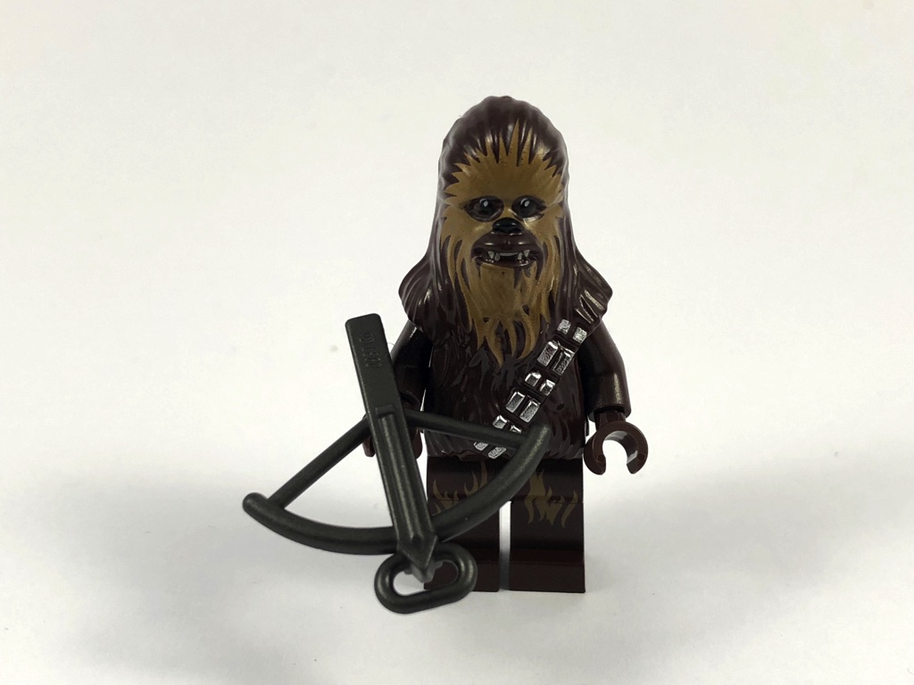 La minifig de Chewbacca présente dans cette boîte est loin d’être exclusive. On la retrouve dans pas moins de 8 sets jusqu’ici, dont le grand frère de la boîte qui nous intéresse aujourd’hui, le fameux UCS 75192 – Millenium Falcon. On retrouve les éléments habituels d’une minifig de wookie : des jambes dark brown avec quelques poils, un torse monochrome en dark brown, et un ensemble torse + tête qu’on vient enfiler sur le tout. Il est donc impossible d’orienter la tête comme on le souhaite. La tampographie est assez soignée, puisqu’en plus des poils de couleurs différente sur les jambes et autour de la tête ; les yeux, les dents et la cartouchière sont représentés. Cette boîte vous permettra donc d’obtenir une belle version de Chewbacca à moindres frais.