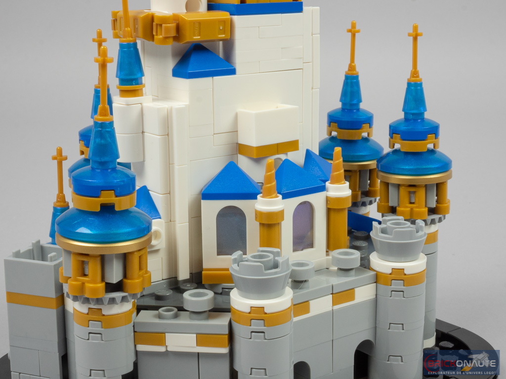 La construction est digne des meilleurs sets de la gamme 18+ / Creator Expert. On enchaîne les techniques de construction plus intéressantes les unes que les autres, et les détournements de pièces pour former ici une tourelle ou là une fenêtre ou un balcon. C’est franchement intéressant, et ce de bout en bout malgré une petite phase répétitive en fin de construction pour la réalisation des 5 tourelles.