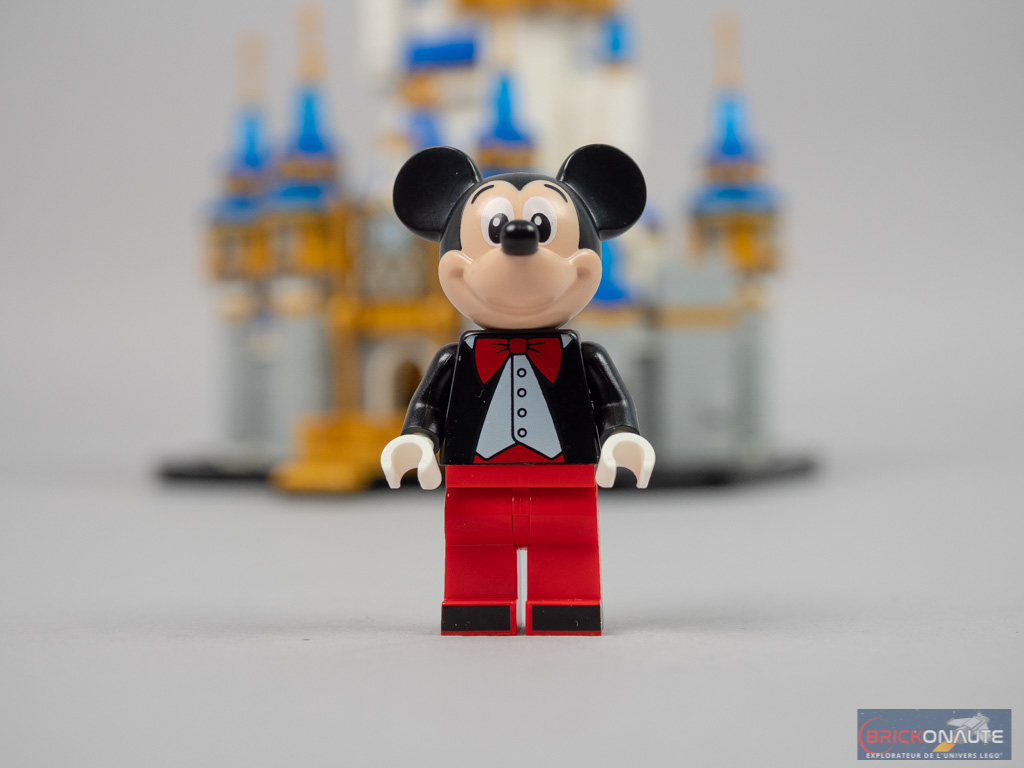 On ne trouve qu’une seule minifig dans ce set – qui se révèle assez logiquement être la souris la plus célèbre du monde : Mickey himself. Il est, du moins pour le moment, totalement exclusif à ce petit set et porte une veste de smoking noire, au-dessus d’un gilet blanc et surmonté d’un noeud papillon rouge. Comme d’habitude, on regrettera le blanc un peu terne lorsqu’il est tampographié sur une pièce foncée.