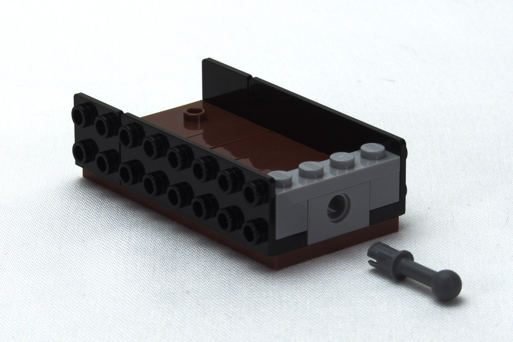 La construction est très rapide, on termine l’ensemble en moins de 15 minutes. Si on ne retrouve évidemment pas de techniques particulières, le tracteur est soigné malgré sa grosse base, avec des grilles sur les côtés, son échappement et une petite paire de feux avant brickbuilt. La remorque apporte une petite finition avec du SNOT pour les côtés et quelques tenons à l’intérieur pour tenir le matériel.