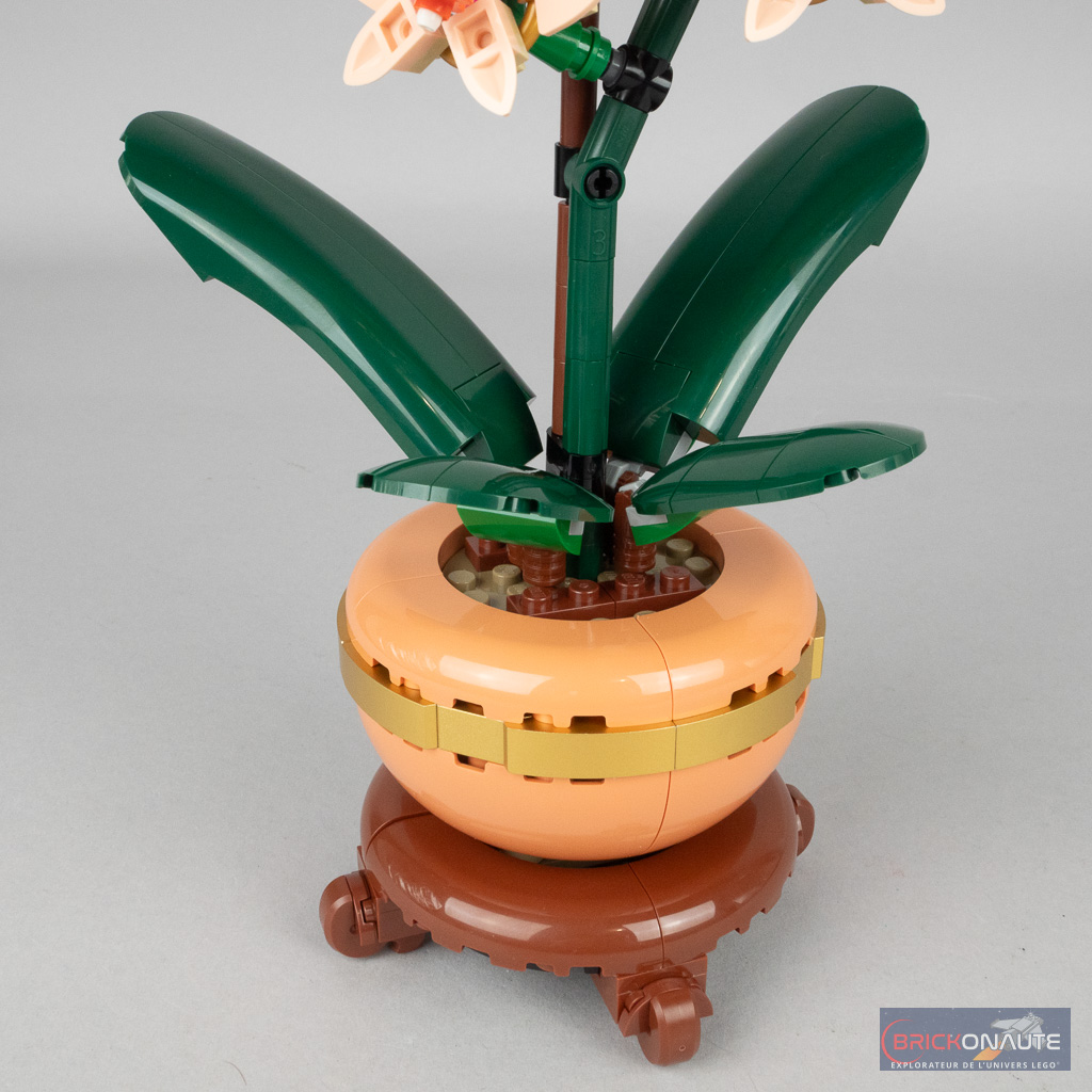 Malgré ce petit défaut la composition de l’ensemble est réussie avec une belle harmonie de couleurs et de formes. Il serait par contre temps que LEGO se décide à sortir des connecteurs à cliquet colorés, ici en gris à la base des feuilles c’est un peu dommage. L’intérieur du pot aurait également mérité un peu de « remplissage » – comme le substrat utilisé pour les véritables orchidées.