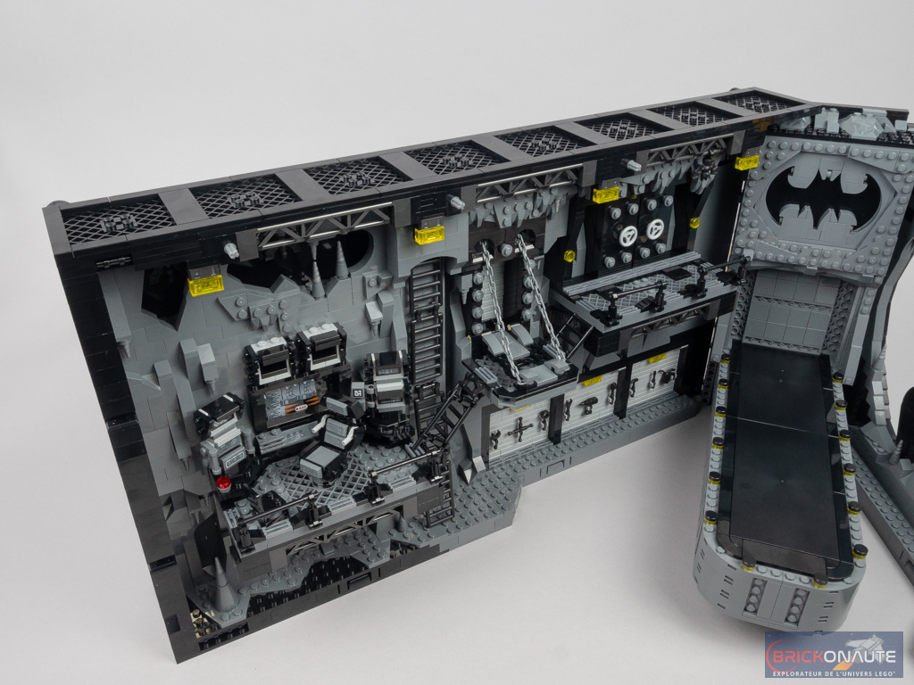 Le moins que l’on puisse dire, c’est que c’est impressionnant. Par la taille, tout d’abord : complètement ouvert, l’ensemble mesure presque 1,15m de long – à peine plus petit que le set LEGO Icons 10294 Titanic et ses 1,35m. Mais si vous avez moins de place, vous pourrez évidemment l’exposer en position fermée – la « boîte » mesure alors 51cm de large pour 30cm de haut. Le symbole Batman qui orne cette boîte est superbement réalisé et dévoile suffisamment de détails intérieurs pour envisager de l’exposer ainsi.