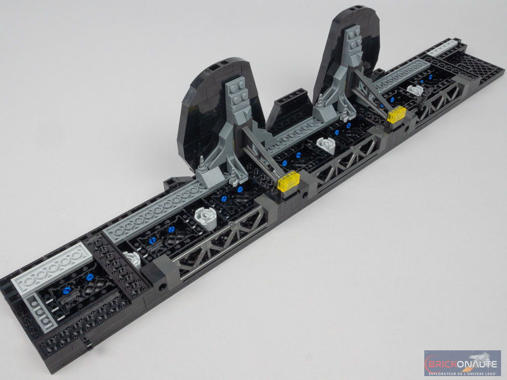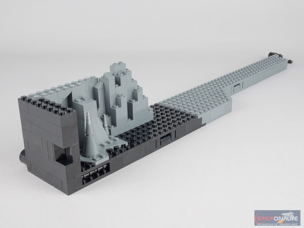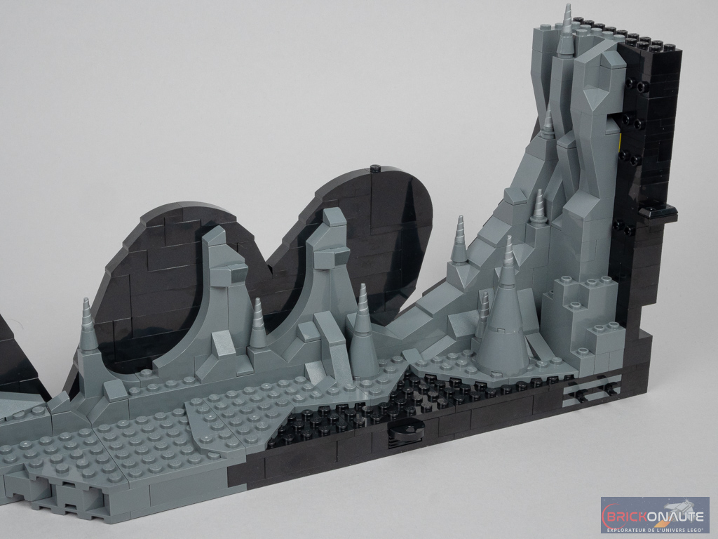 On assemble les autres plateformes sans leurs équipements, on termine la deuxième notice d’instructions en construisant la structure de la porte centrale, et en ajoutant les premiers éléments au « couvercle » de la boîte de l’ombre – il s’agit principalement d’une superposition d’éléments noirs côté extérieur, et de quelques éléments rocheux gris à l’intérieur.
