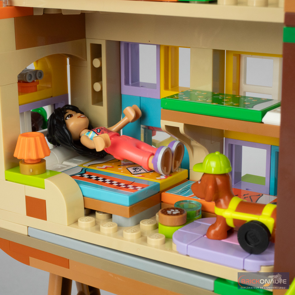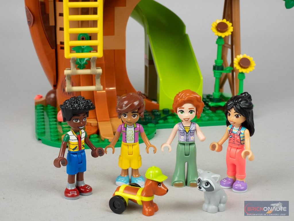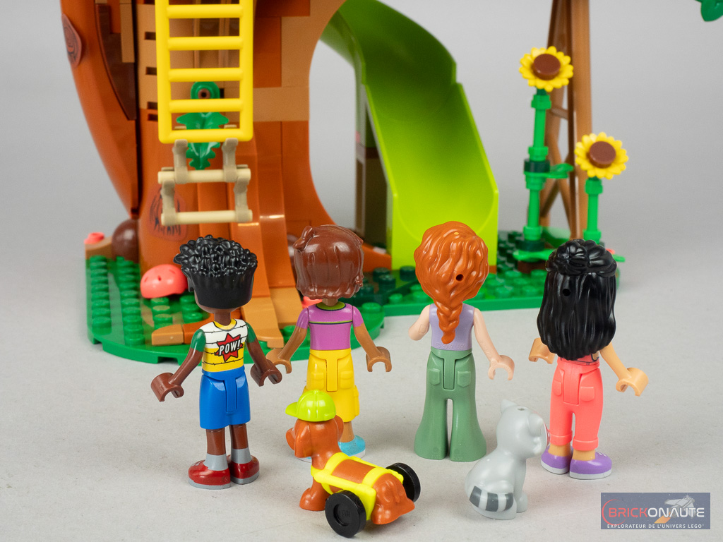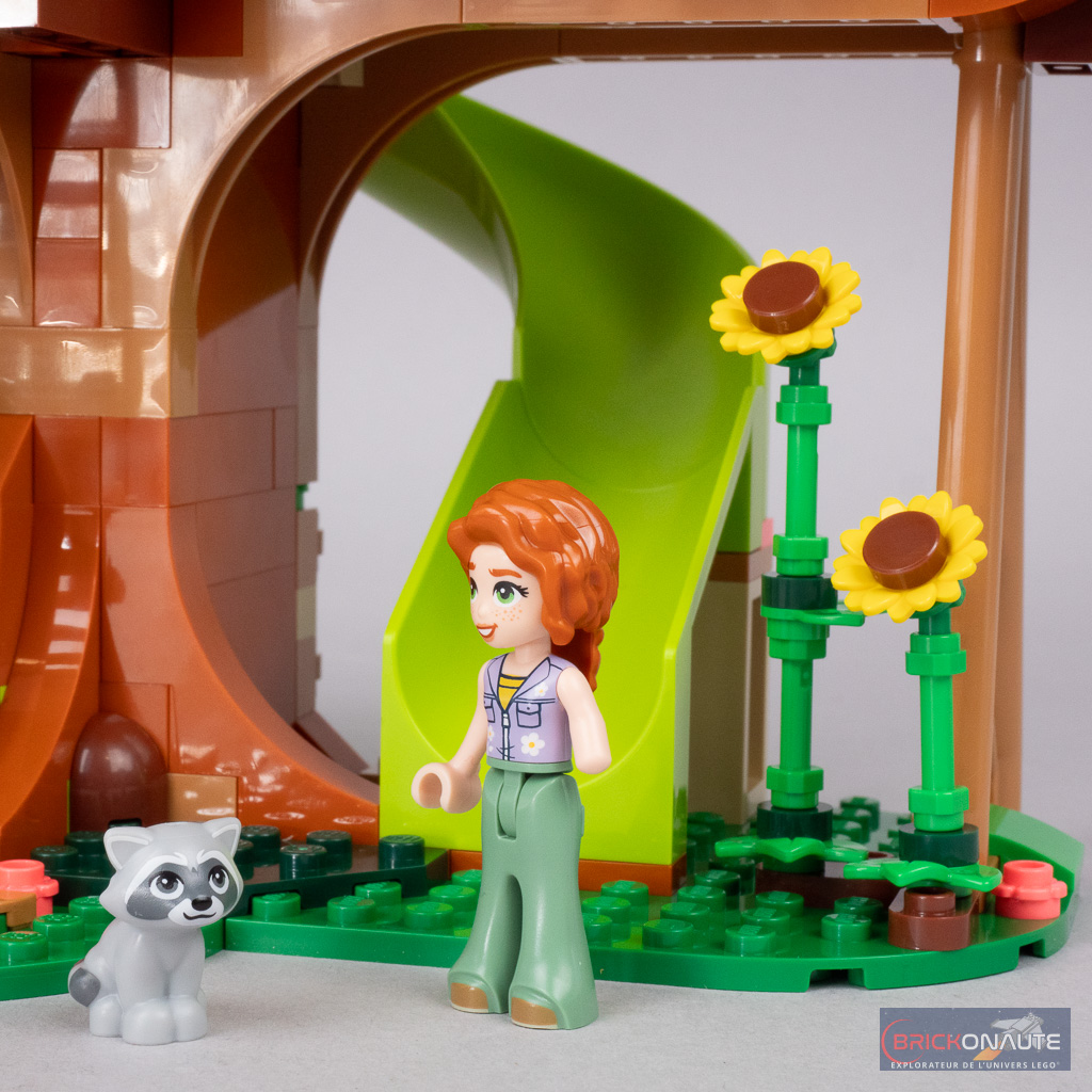 Enfin, concernant le tarif, cette boîte est proposée au prix public de 69,99 € pour 701 pièces, soit tout juste 0,10 €/pièce. C’est un peu cher pour une gamme « maison » comme LEGO Friends, lorsqu’aucune licence ne vient justifier un prix trop élevé. On remarquera malgré tout quelques éléments d’inventaire intéressants comme les deux pièces de toboggan lime, ou encore une jolie variété de pièces dark orange ou medium nougat pour le tronc dont de grandes slopes habituellement réservées aux voitures.