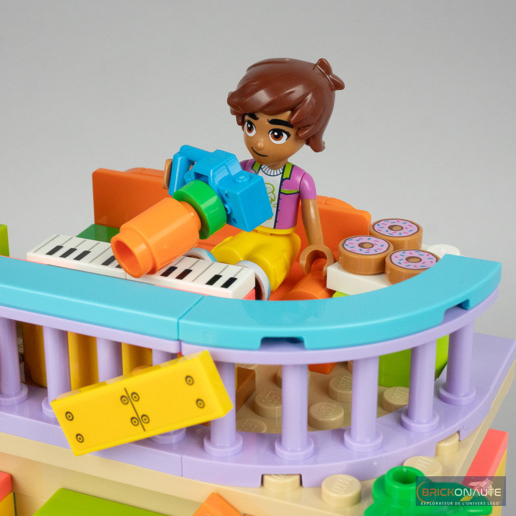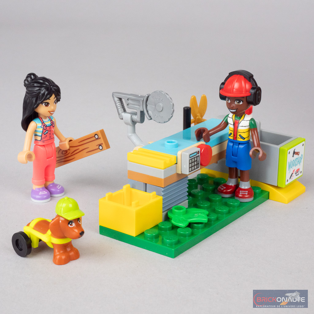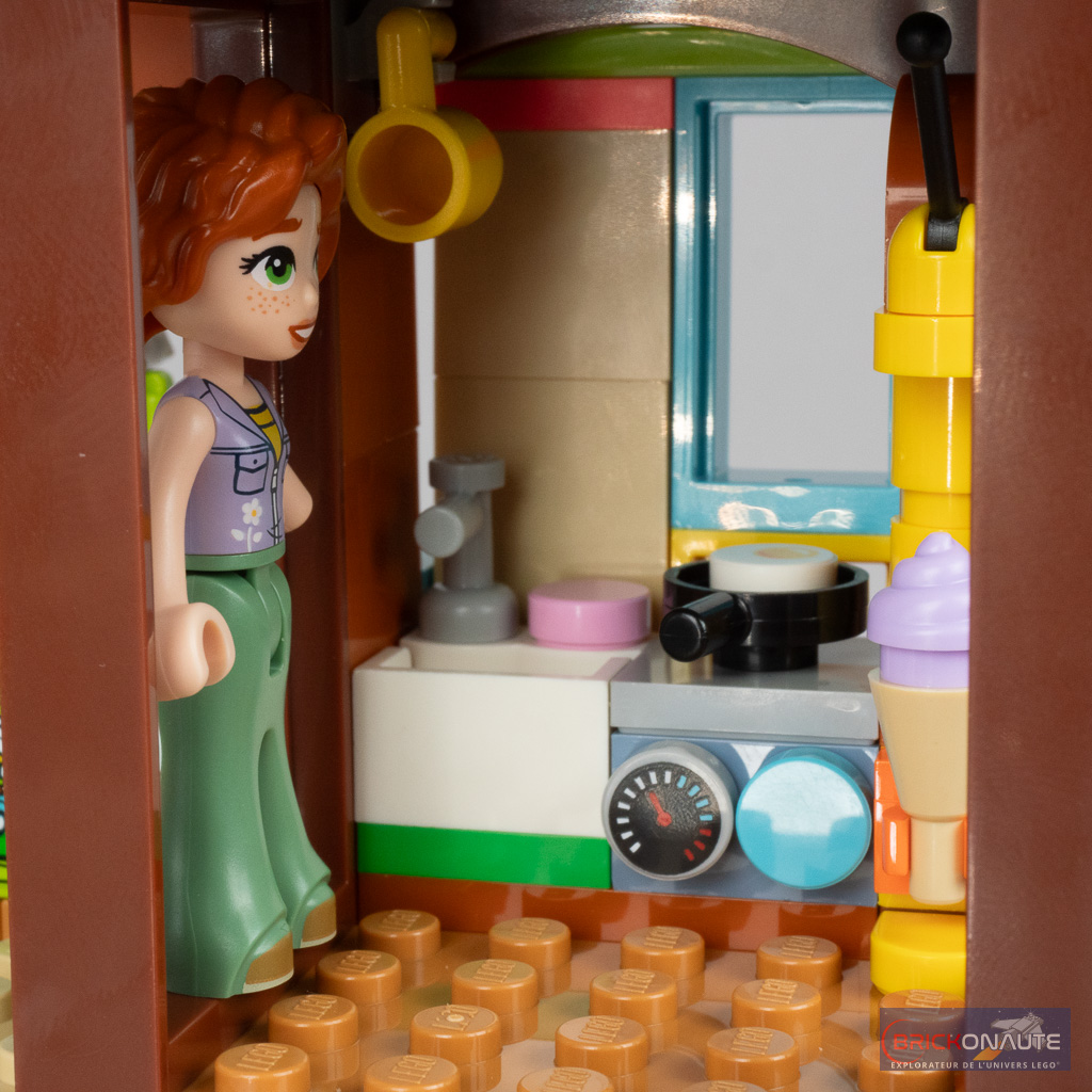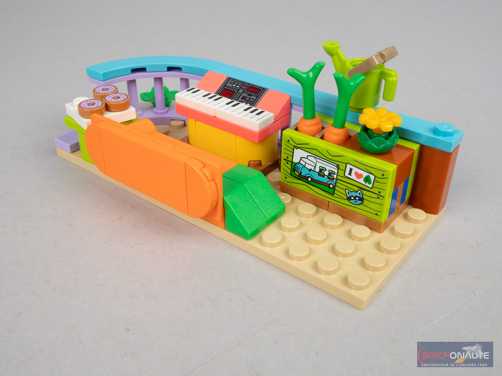 Enfin, concernant le tarif, cette boîte est proposée au prix public de 69,99 € pour 701 pièces, soit tout juste 0,10 €/pièce. C’est un peu cher pour une gamme « maison » comme LEGO Friends, lorsqu’aucune licence ne vient justifier un prix trop élevé. On remarquera malgré tout quelques éléments d’inventaire intéressants comme les deux pièces de toboggan lime, ou encore une jolie variété de pièces dark orange ou medium nougat pour le tronc dont de grandes slopes habituellement réservées aux voitures.