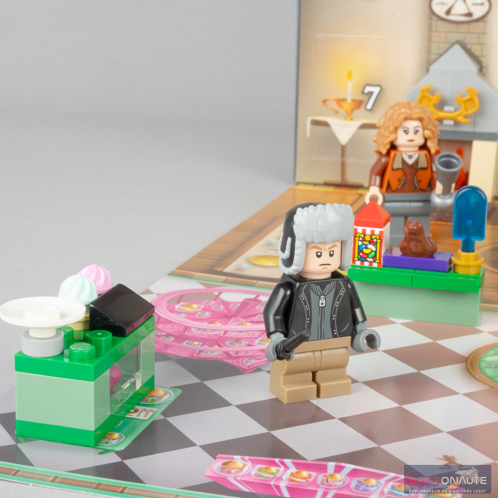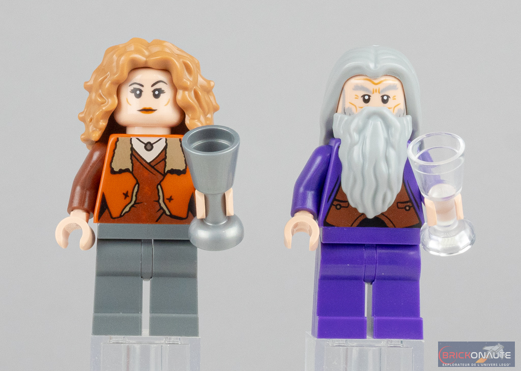Deux adultes sont également de la partie avec Aberforth Dumbledore, frère cadet d’Albus et barman de La Tête de Sanglier, ainsi que Madame Rosmerta, propriétaire des Trois Balais. Cette dernière est la seule qui n’ait pas droit à un torse exclusif, on la retrouve dans cette même tenue dans le set 76388 Hogsmeade Village Visit (mon test à cette adresse). C’est en revanche la première fois qu’Aberforth Dumbledore apparaît chez LEGO, et sa tête et son torse sont inédits.