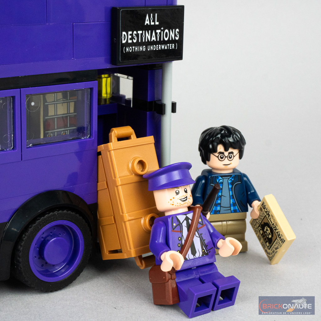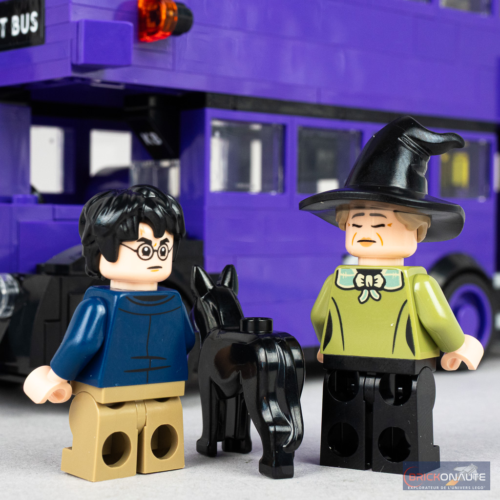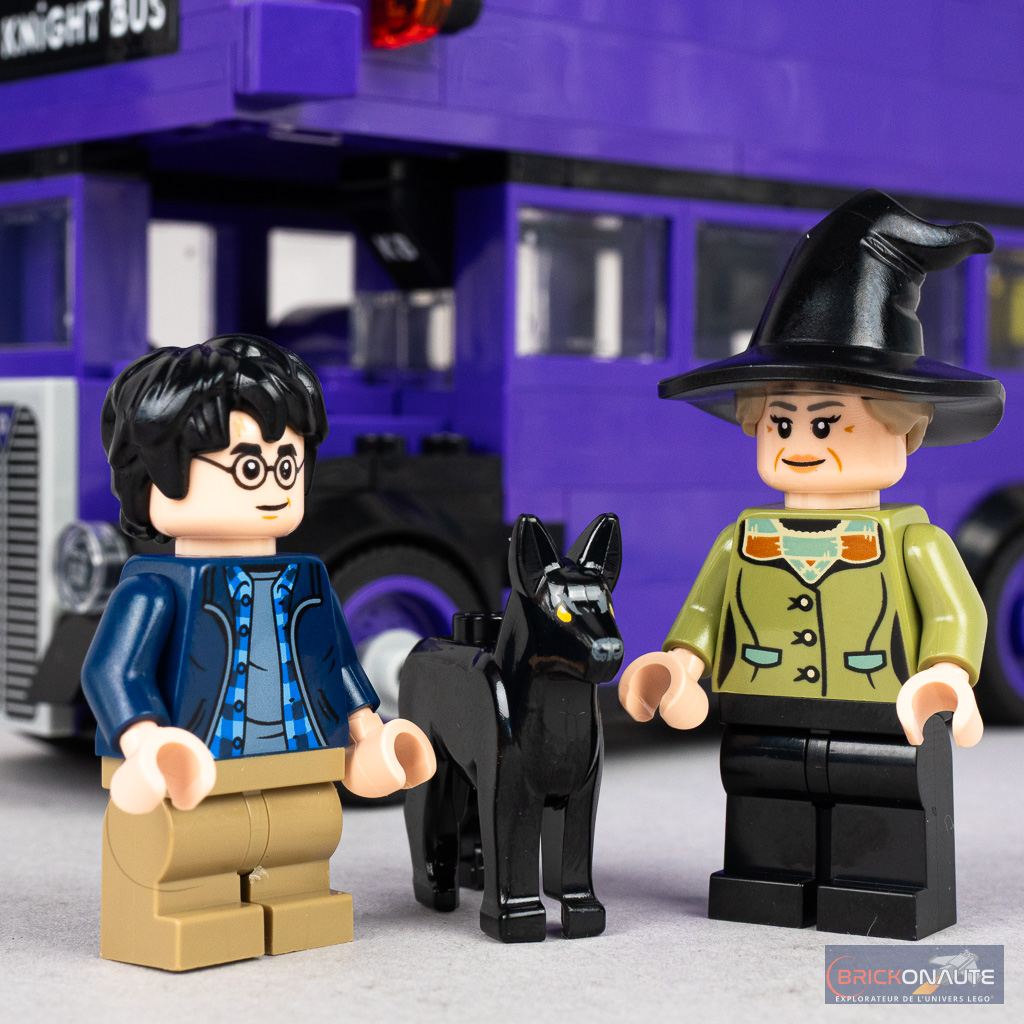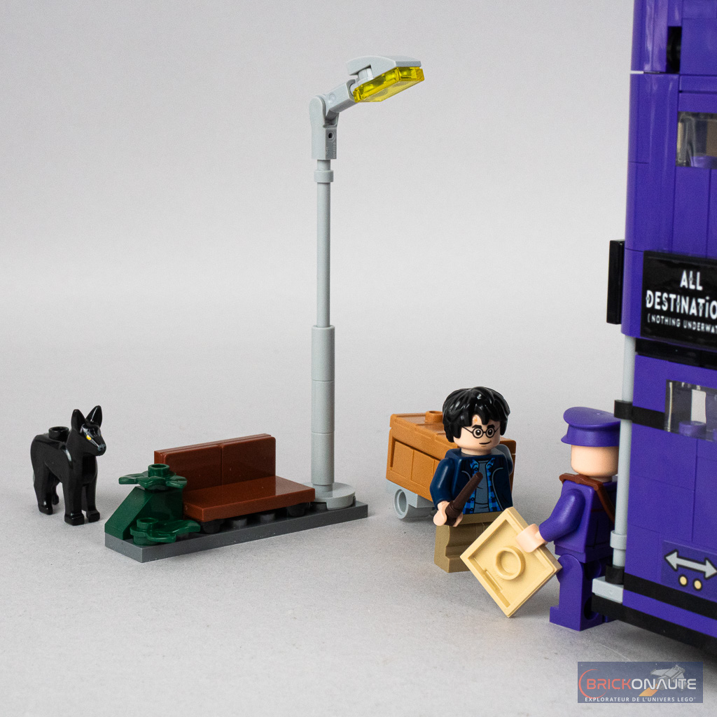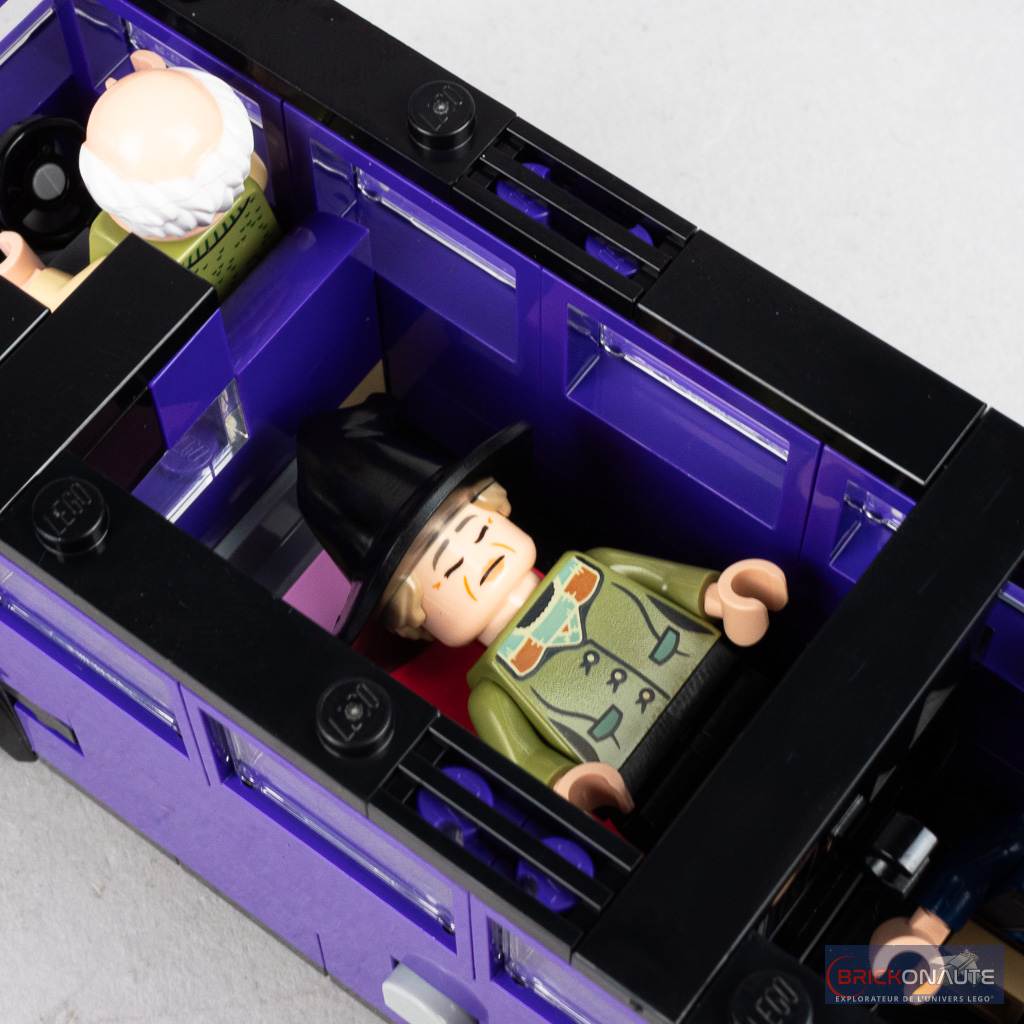 Du côté des minifigs, LEGO fournit 4 personnages dans cette boîte avec évidemment Harry Potter, le chauffeur du bus Ernie Prang, le contrôleur Stan Shunpike (et son exemplaire du Daily Planet titrant sur l’évasion de Sirius Black) et la sorcière endormie. Pour le coup, le casting est plutôt complet en regard de la scène vue dans Harry Potter et le Prisonnier d’Azkaban.