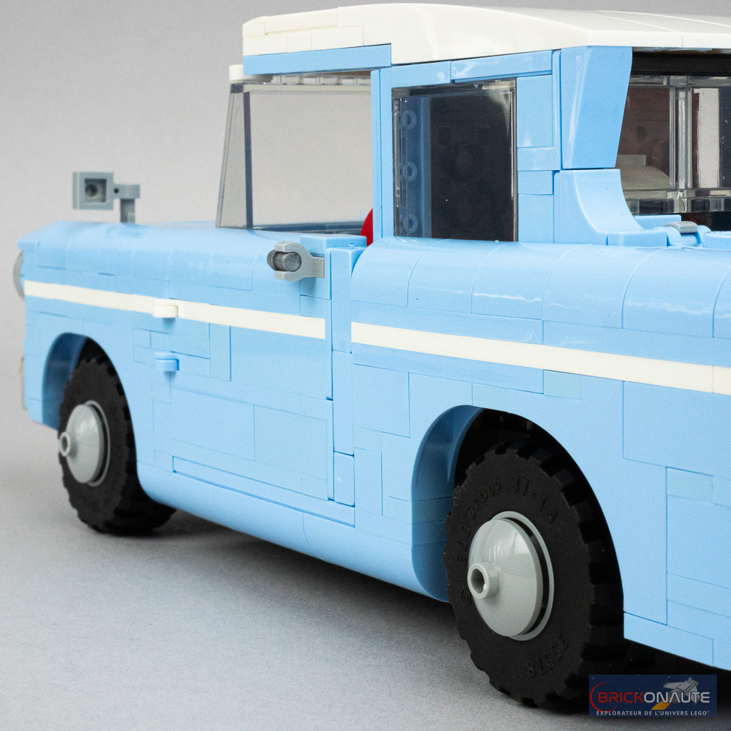 Cette boîte de 868 pièces est vendue par LEGO au prix de 79,99 €, soit environ 0,092 €/pièce – un ratio plutôt raisonnable pour un set sous licence Harry Potter – qui ne contient certes pas de minifigs mais qui propose une reproduction à une échelle respectable de la Ford Anglia, le modèle fini mesurant environ 25 cm de long.