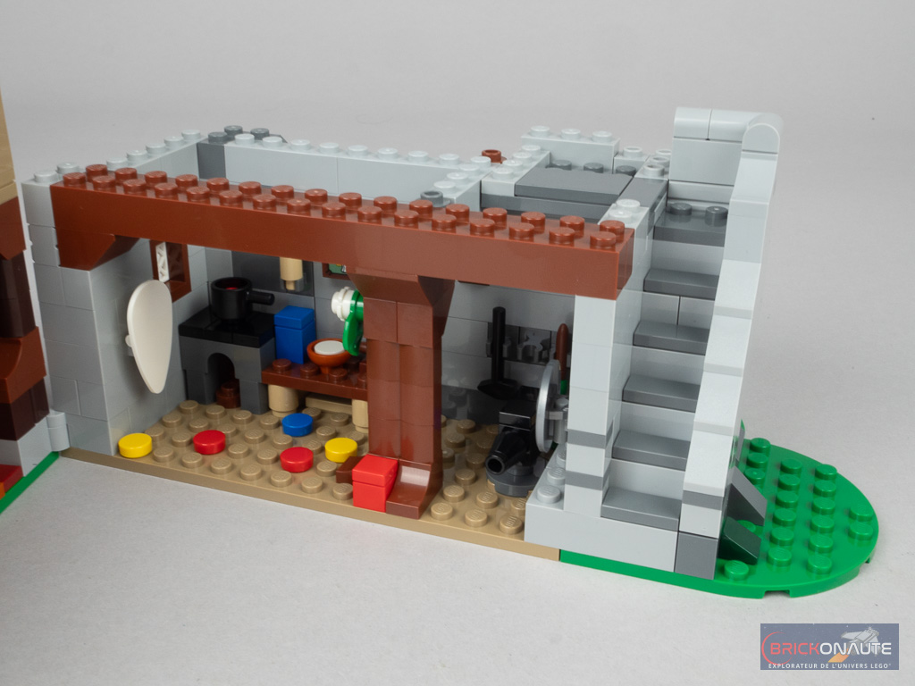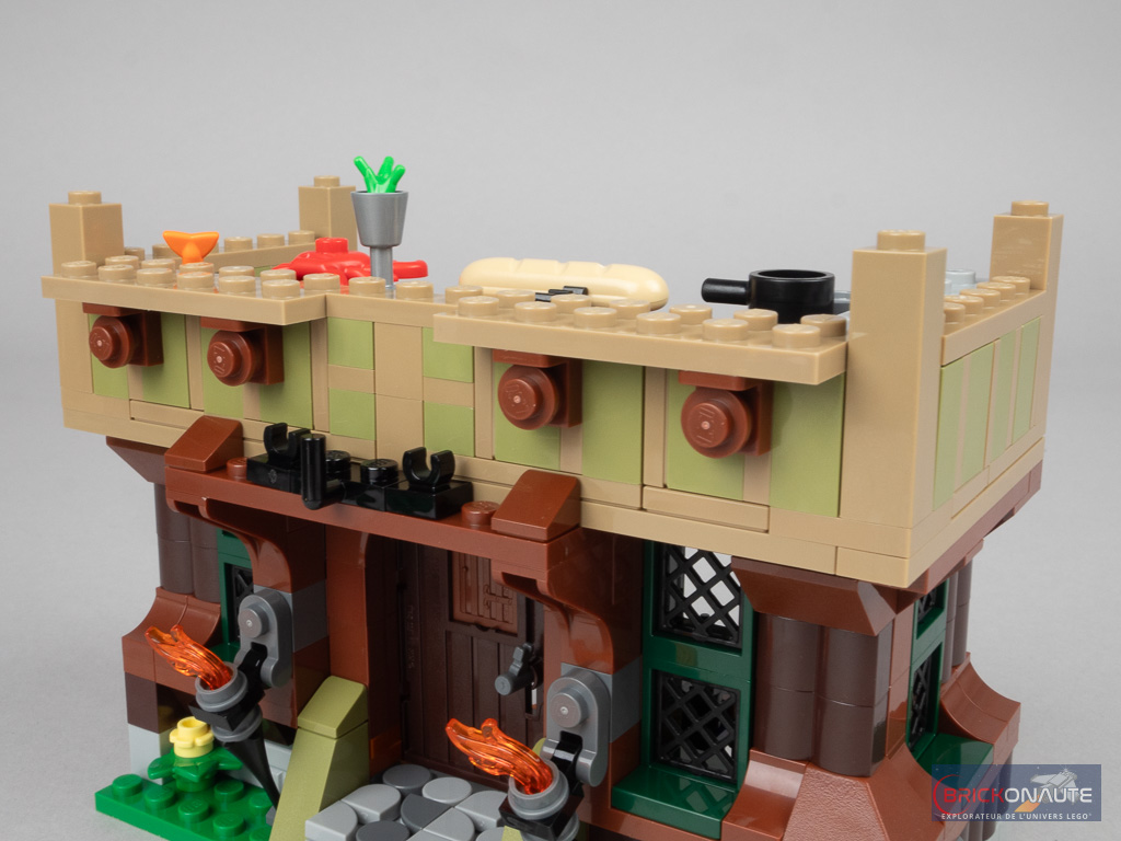 Autre défaut notable, il n’existe aucun accès « réaliste » pour les minifigs aux deux étages de l’auberge (il y a par bien un escalier et une échelle de l’autre côté, pour la chambre et la tour de guet). S’il s’agissait d’un gros point fort du set 10305 Lion Knights’ Castle qui avait tout prévu de ce point de vue, c’est dommage de ne pas s’être imposé les mêmes contraintes de design ici.