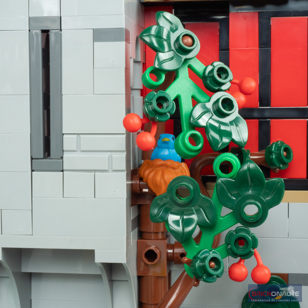 Avec un peu plus de 3000 pièces, il m’aura fallu environ 6 heures pour terminer l’assemblage. Sans être totalement déçu par cette expérience de construction, je vais être honnête avec vous : je m’attendais à mieux pour un set de la gamme LEGO Icons. Les constructions des différents bâtiments se suivent et se ressemblent, utilisant toujours les mêmes techniques SNOT pour la réalisation des colombages. La conception des toitures est également très similaire d’un bâtiment à l’autre.