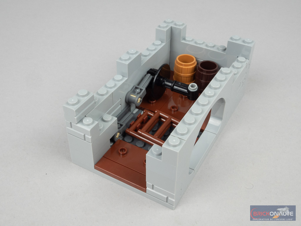 Autre point de déception : le peu de fonctionnalités proposées : il faudra en effet se contenter d’une trappe à libérer pour accéder au grenier, et d’un treuil fonctionnel pour acheminer les marchandises jusqu’à ce dernier. J’en attendais clairement plus, même pour un set dont la vocation première est d’être exposé dans une collection de fan adulte.