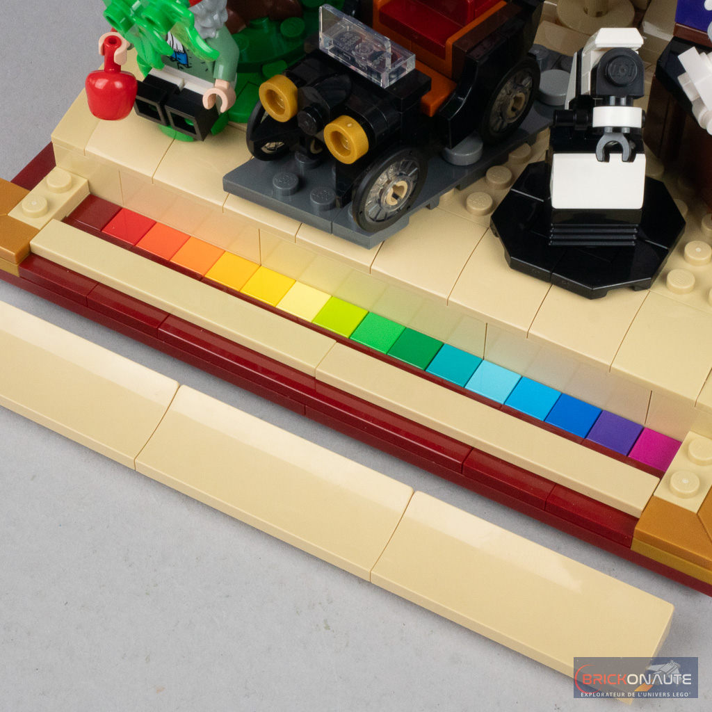 Du côté de l’inventaire, la boîte compte un total de 879 pièces pour un prix public de 79,99 € – soit 0,091 €/pièce. Pas spécialement donné pour un set « maison » sans licence particulière, malgré tout on appréciera de trouver dans la gamme LEGO Ideas une boîte à un tarif accessible, ce qui devient de plus en plus rare.