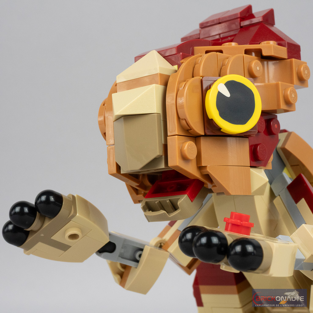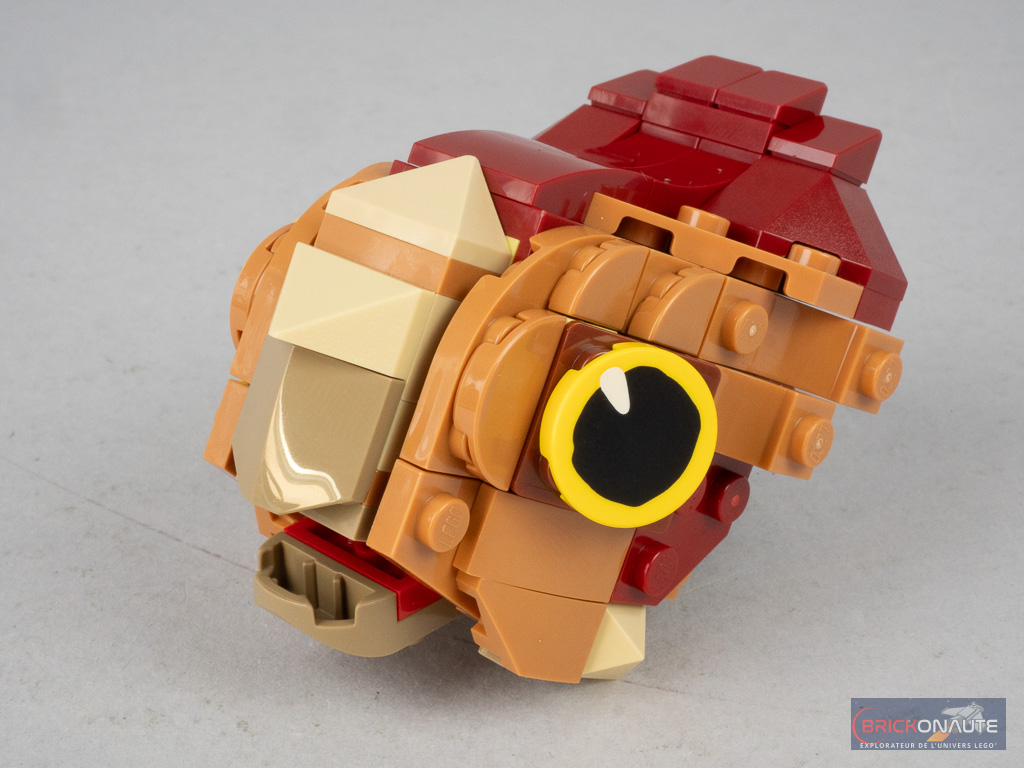On se retrouve une nouvelle fois avec un assemblage plutôt mignon – avec une tête surdimensionnée pour renforcer un peu plus cet aspect. Le niveau de détail me semble satisfaisant pour une boîte avec ce positionnement tarifaire dédiée aux plus jeunes, mention spéciale sur ce sujet aux nouveaux petits dômes noirs au bout des pattes. J’aime également beaucoup le choix des couleurs, avec ce joli mélange tan, dark tan et dark red qui fonctionne vraiment bien.