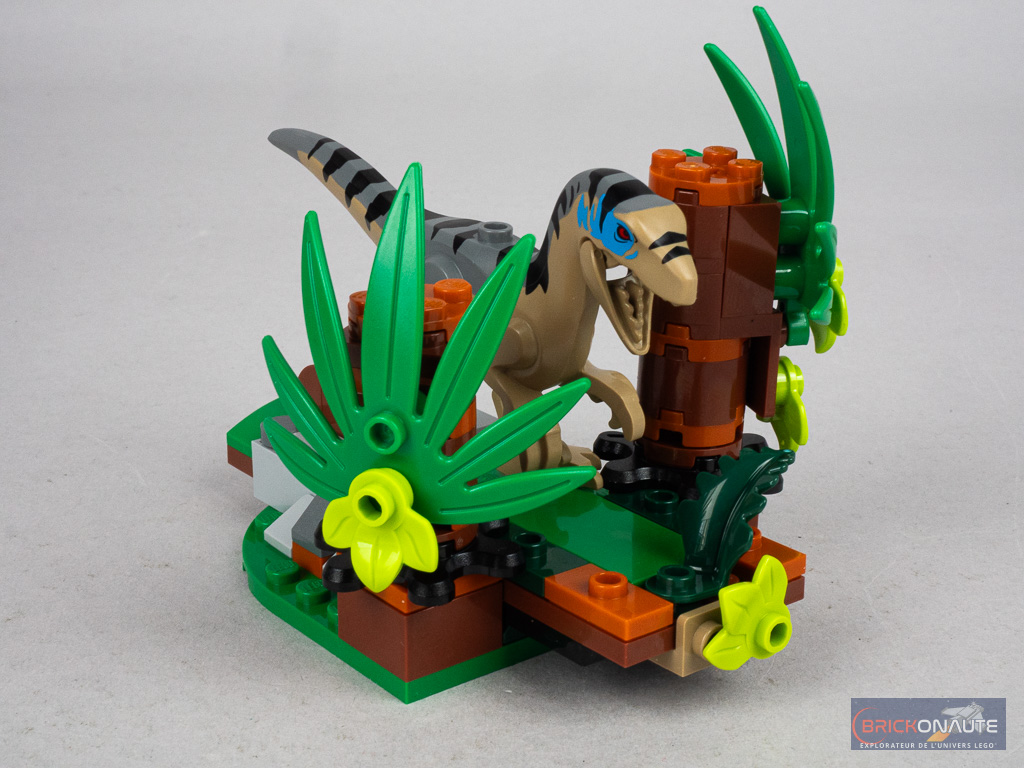 La construction est assez classique et ne présentera pas de difficultés particulières, même pour les plus jeunes, si ce n’est l’application de ces satanés stickers. Le buisson intègre un petit mécanisme tout simple mais plutôt sympa qui permet, en poussant le support sur lequel se trouve le dino, de le faire « apparaître » au coeur des buissons.