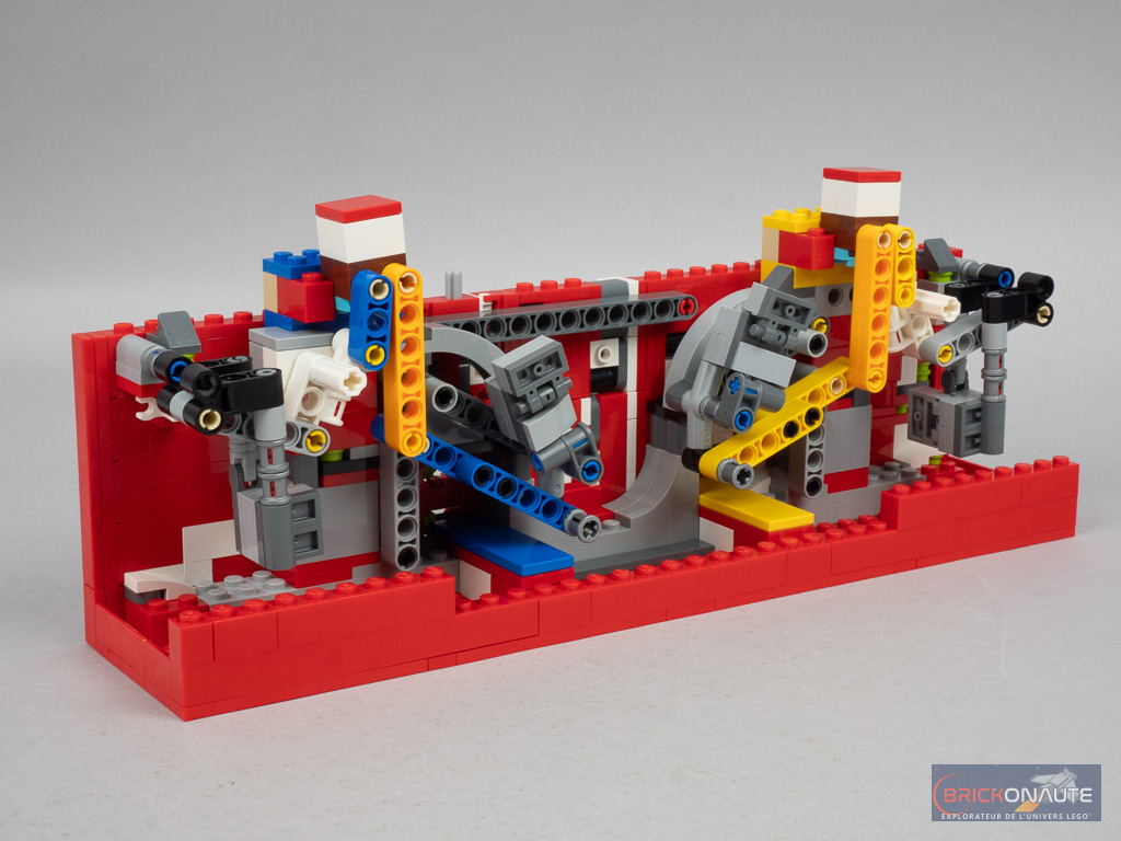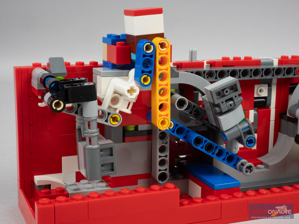 Ce mécanisme présente un autre avantage insoupçonné : la construction du mécanisme interne, à base de leviers Technic, est très intéressante. J’ai été aussi agréablement surpris par les techniques employées pour construire les lettres, c’est très inventif et bien pensé. Je ne vous détaillerai pas ici le processus de construction, mais pour ceux que ça intéresse vous retrouverez toutes les photos à cette adresse.
