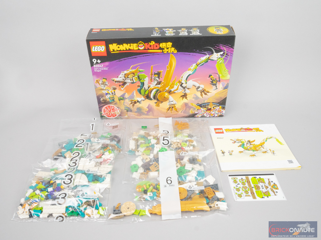 Jusqu’ici, la gamme LEGO Monkie Kid ne nous avait proposé qu’un seul dragon avec la référence 80037 Dragon of the East sortie l’an dernier – une boîte à mettre en rapport avec le set 80049 Dragon of the East Palace dont je vous parlais il y a peu. Un nouveau dragon a fait son arrivée le 1er juin et je vous propose de le découvrir aujourd’hui avec mon test du set 80047 Mei’s Guardian Dragon.