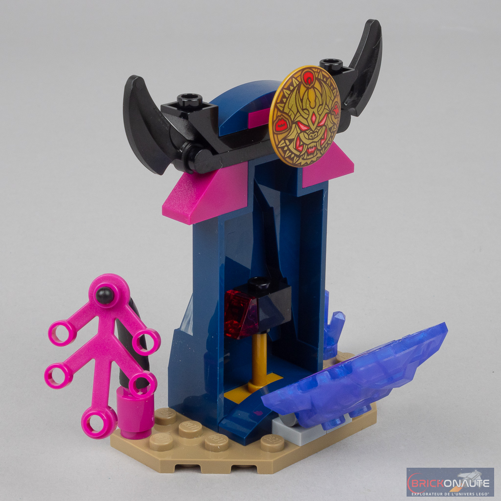 Surtout par le fait que malgré sa petite taille, cette boîte propose 3 vraies constructions : le robot piloté par Arin, un planeur avec lance-disques et ailes mobiles pour le méchant de service, et une « grotte de cristal » (je n’invente rien, c’est LEGO qui la décrit ainsi) renferment un « maillet de la destruction ». Les plus jeunes auront donc de quoi s’amuser immédiatement après la construction et s’inventer de nombreuses histoires.