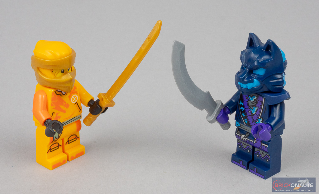 Et même s’il s’agit d’un set « 4+ », LEGO n’a pas lésiné sur les deux minifigs fournies avec Arin dans sa tenue « mech » et un wolf mask warrior (guerrier au masque de loup) – identique à ceux trouvés dans les autres sets de cette vague de sortie. Les deux minifigs sont absolument superbes et n’ont rien à envier à leurs congénères présentes dans des boîtes prévues pour un public (un peu) plus âgé.