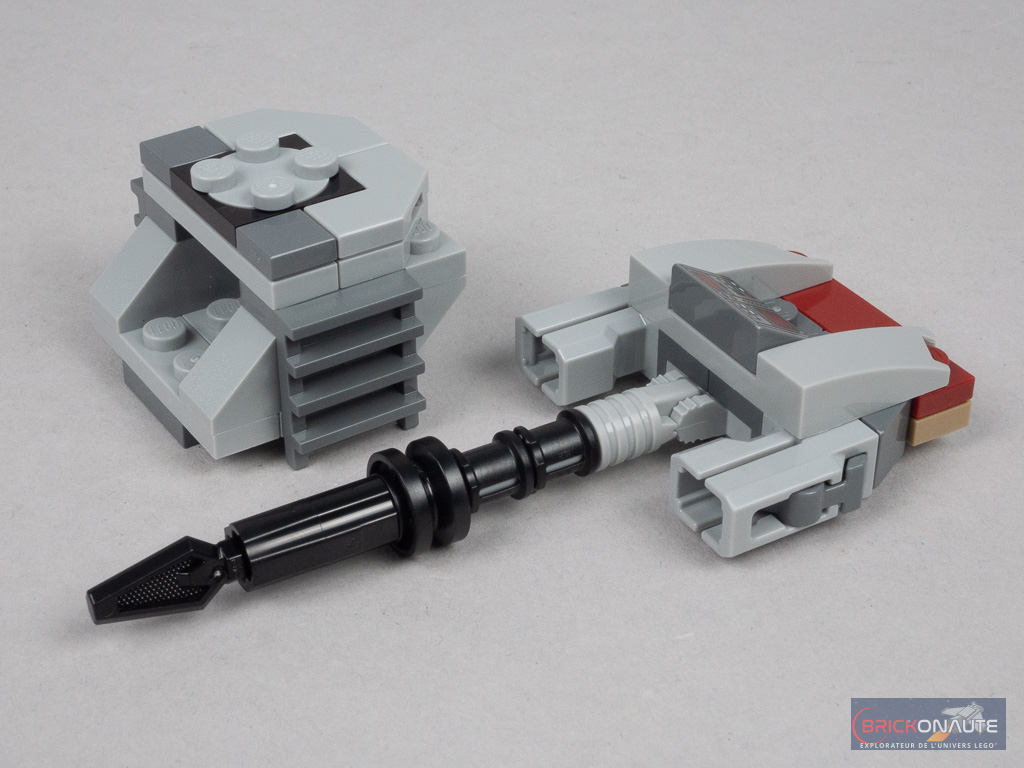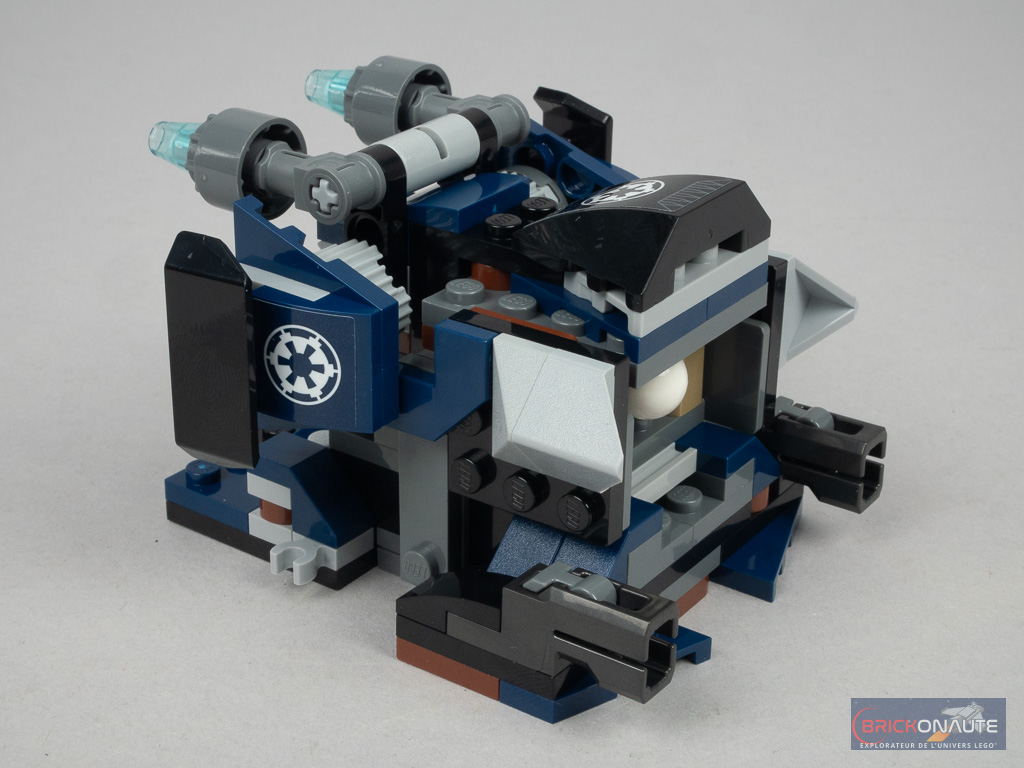 La construction est également plutôt bien pensée. Même s’il n’y a rien de révolutionnaire, on observe quelques techniques intéressantes. Surtout pour la réalisation du cockpit de l’Imperial Dropship, dont l’angle est trouvé grâce à un gros ball joint dissimulé dans la structure. Le sous-assemblage en question vient parfaitement s’ajuster et le résultat est très convaincant.