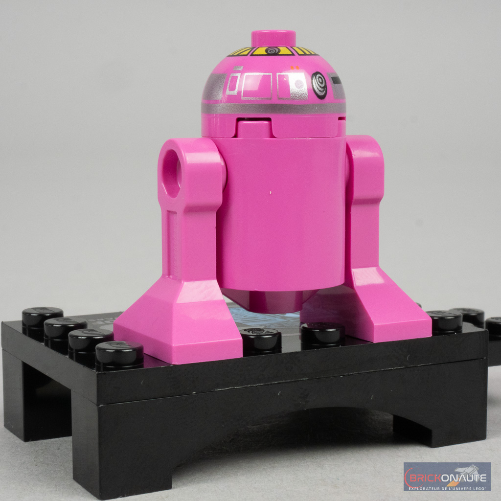 Mais c’est sûrement la minifig exclusive du droïde astromech rose QT-KT (Qutee- qui accompagnait Aayla Secura pendant la Guerre des Clones) qui devrait attiser l’appétit des collectionneurs. Sans aucun rapport avec le set en question (comme d’habitude), sa couleur flashy aura au moins le mérite d’égayer votre collection de minifigs. Il est fourni sur un support tampographié commémorant le 25ème anniversaire de la gamme LEGO Star Wars.
