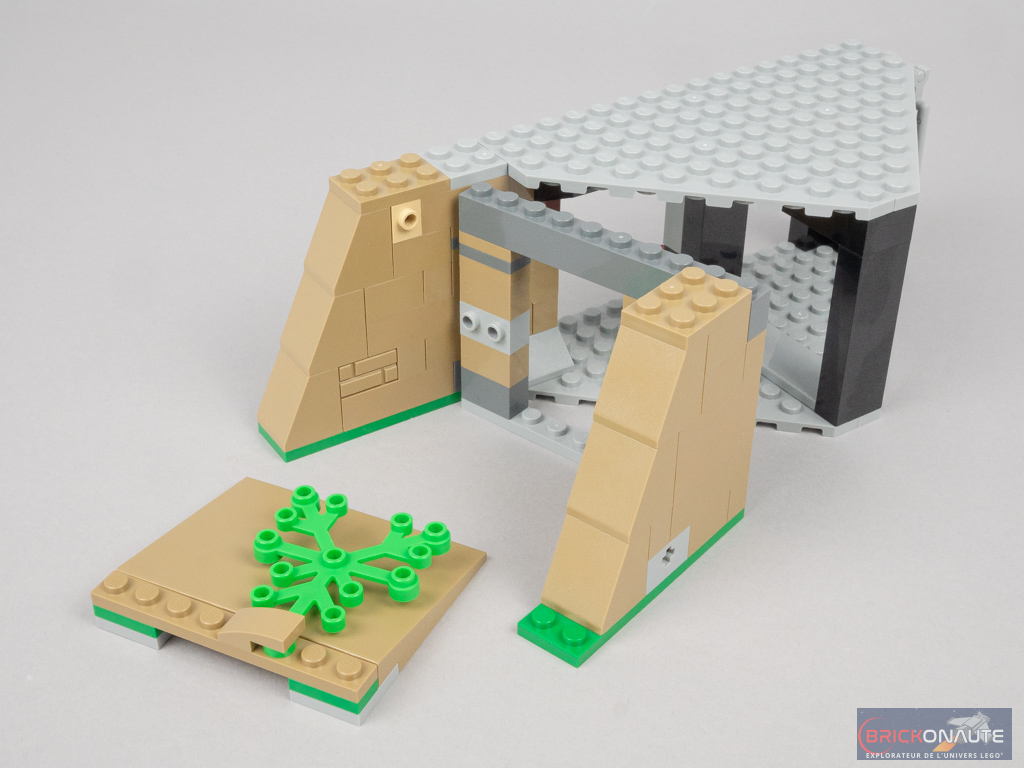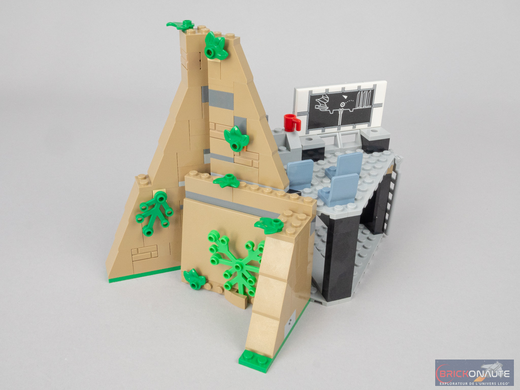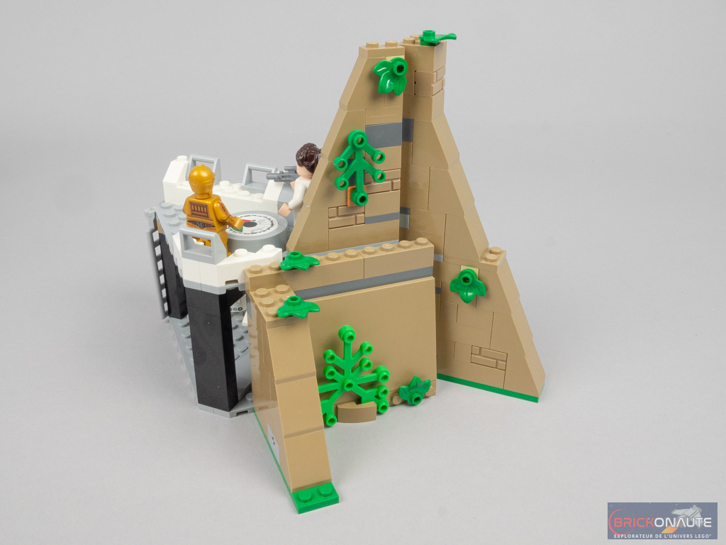 Il est maintenant temps de fixer les différents modules entre eux pour former la base. Le résultat est assez imposant, mais peine à représenter de façon convaincante la base vue dans la saga. Les finitions sont assez sommaires et les quelques feuilles disposées çà et là semblent insuffisantes pour un bâtiment couvert de végétation luxuriante. Reste qu’on reconnaît malgré tout l’endroit, grâce à ses formes caractéristiques.