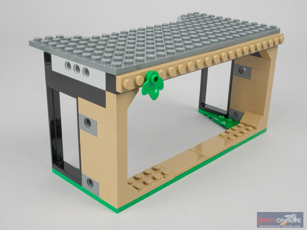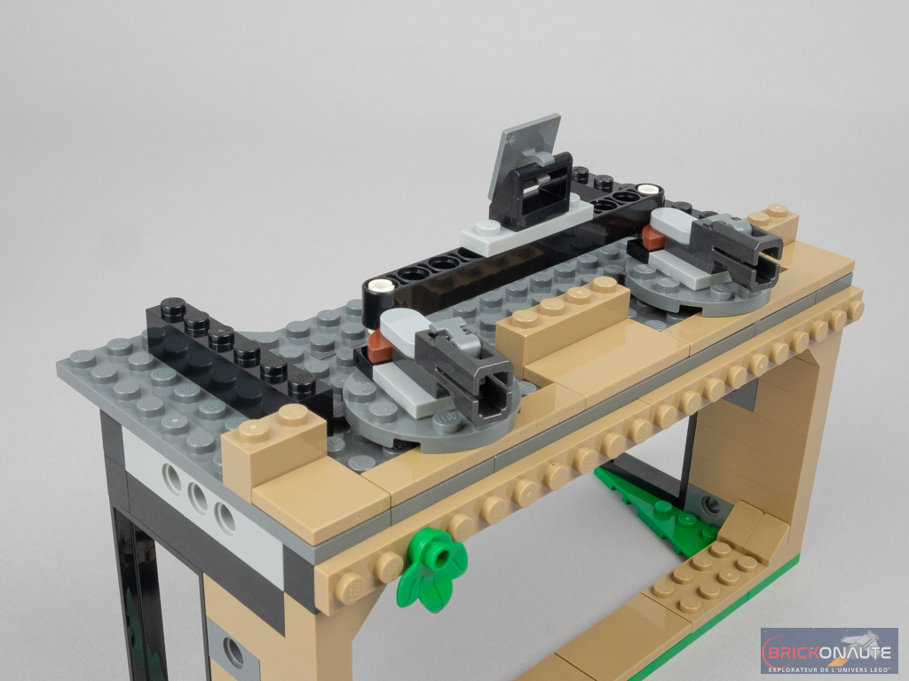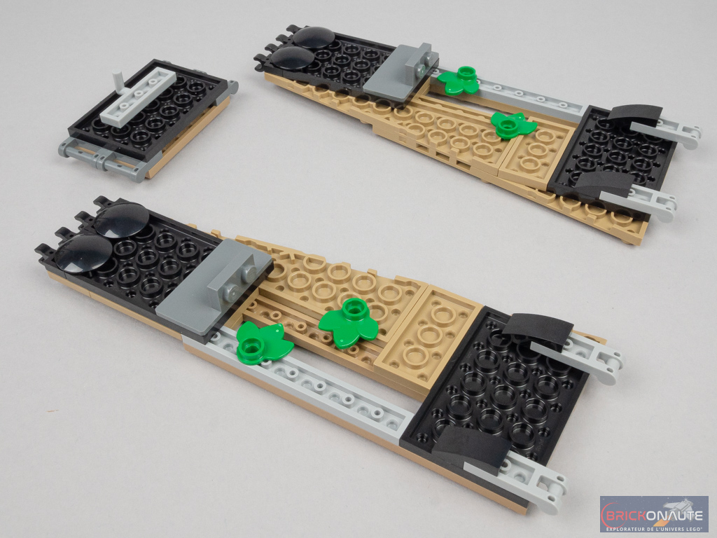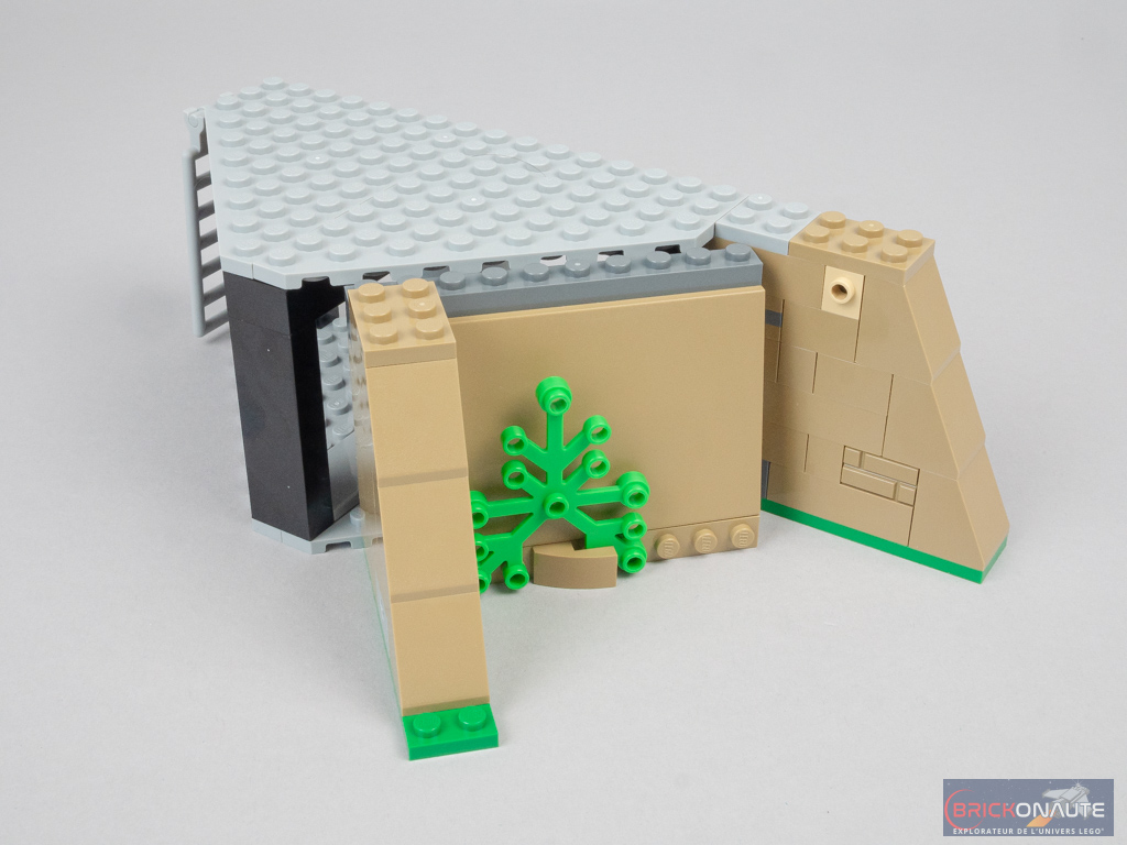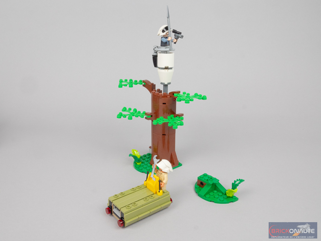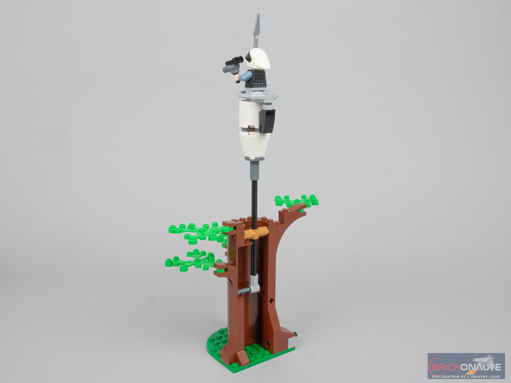 Le dernier sachet de pièces et son numéro 11 est consacré à la construction d’un petit engin de transport (à grand renfort de brackets – et d’une charnière pour une trappe qui s’ouvre), d’un morceau de végétation, et d’un arbre-vigie avec une tige à bloquer dans deux positions différentes pour la plateforme. C’est très (trop) sommaire dans la réalisation, et pas franchement à la hauteur d’un set à ce prix malgré sa cible « 8+ ».
