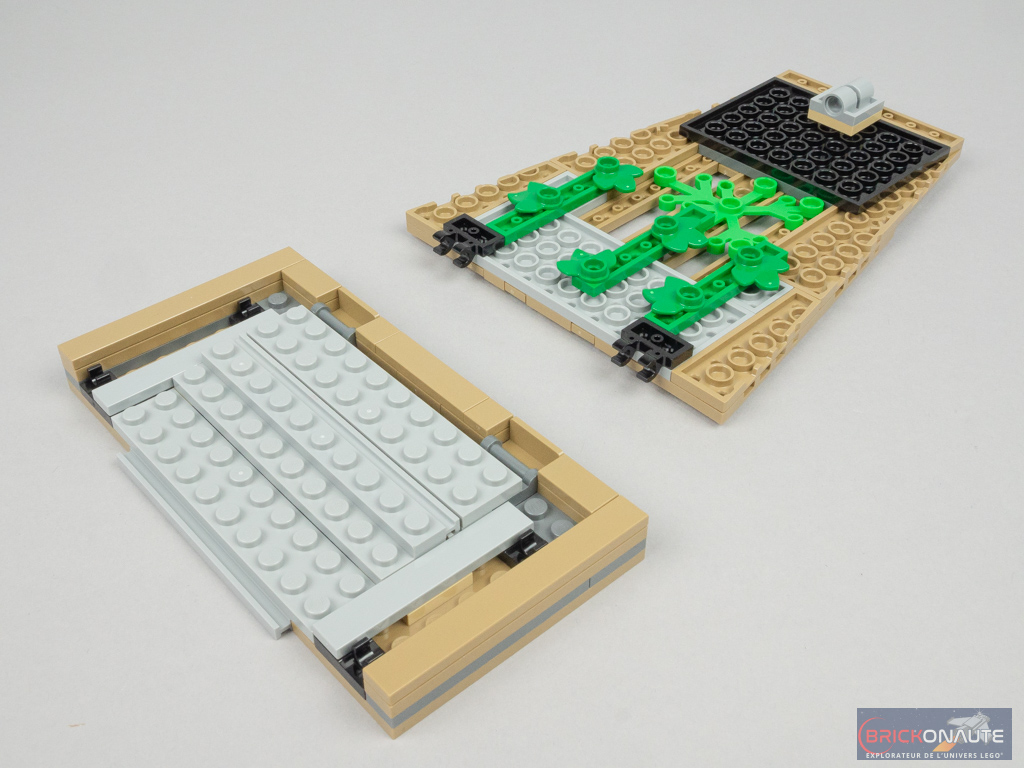 Ce dernier module est sans doute le plus intéressant à construire. On commence par l’assemblage d’une base puis on construit 3 sous-ensembles qui viennent se clipser sur les 3 côtés. En partie supérieure, un dernier sous-ensemble vient se clipser sur les deux côtés, tandis qu’une petite tige maintient en place la partie centrale – c’est très bien pensé. L’étage intermédiaire est simplement posé sur 2 brackets.