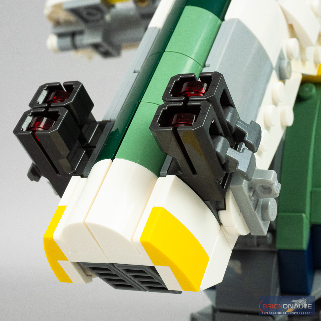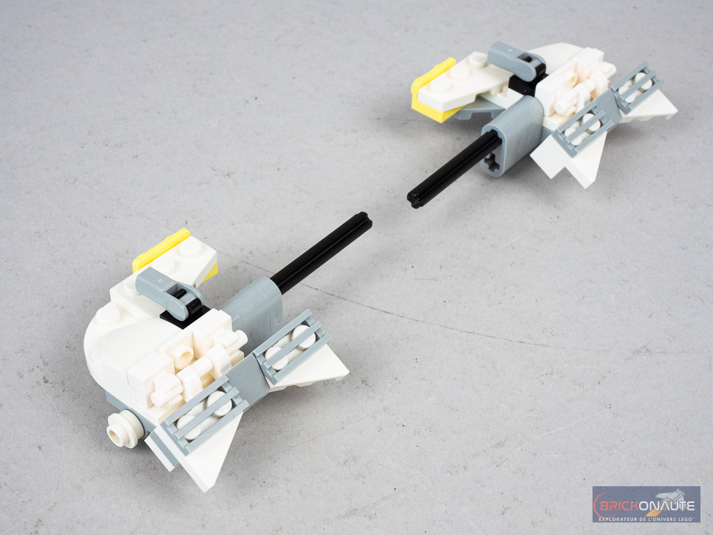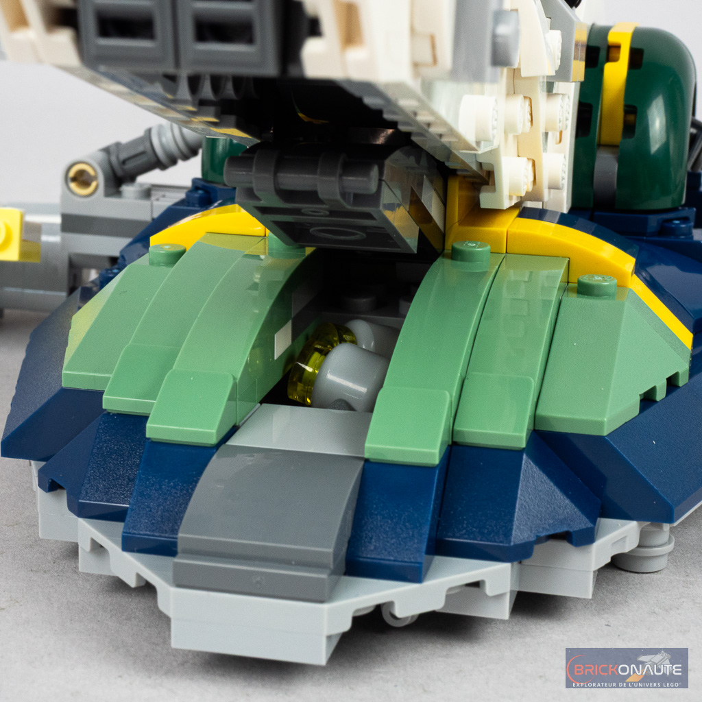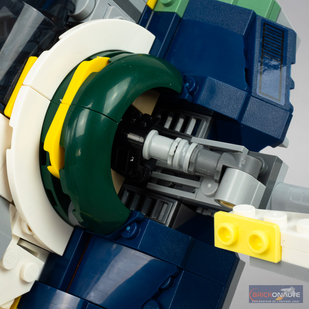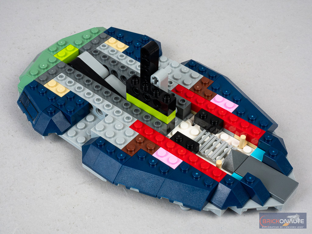 Le processus d’assemblage est plutôt intéressant pour un set « 9+ », avec quelques techniques pour la construction du « nez » du vaisseau, de ses ailes rotatives ou encore de la petite fonctionnalité de largage de charges sismiques. Pour ceux qui seraient intéressés de découvrir l’assemblage de plus près, je vous ai préparé une galerie de photos complète disponible à cette adresse.
