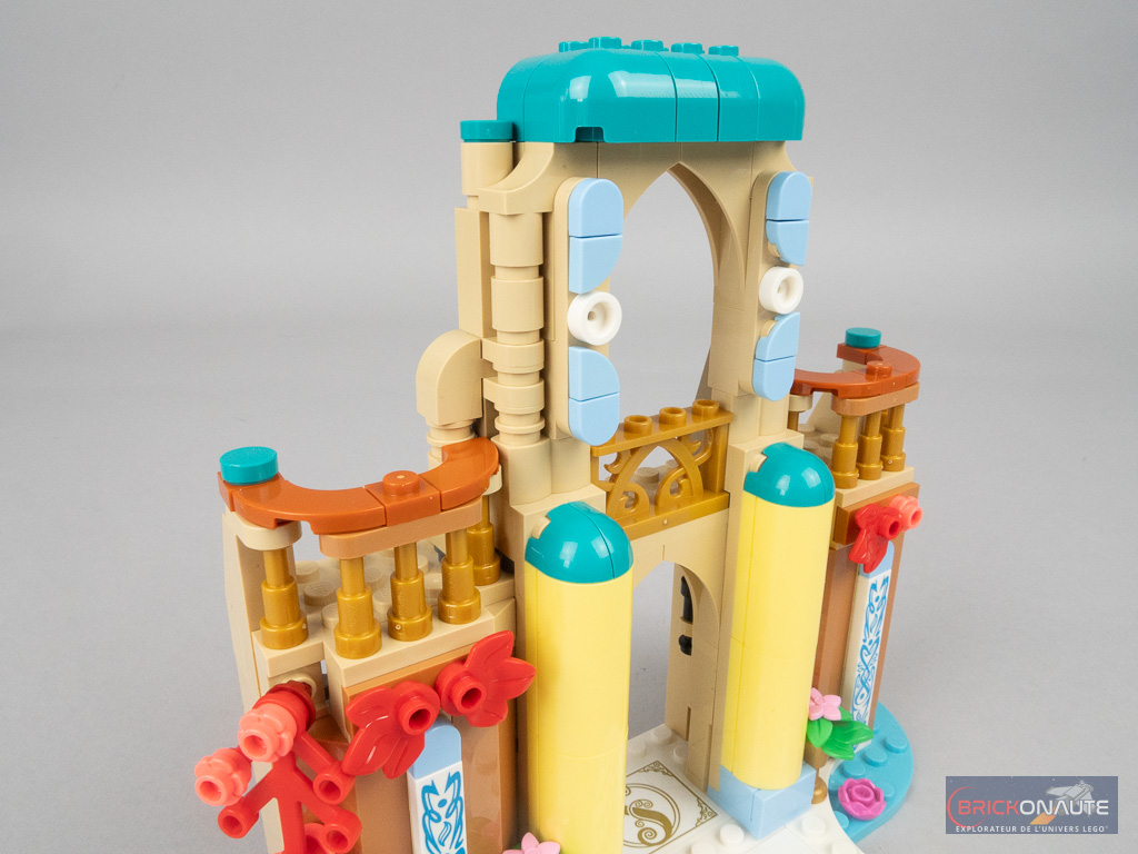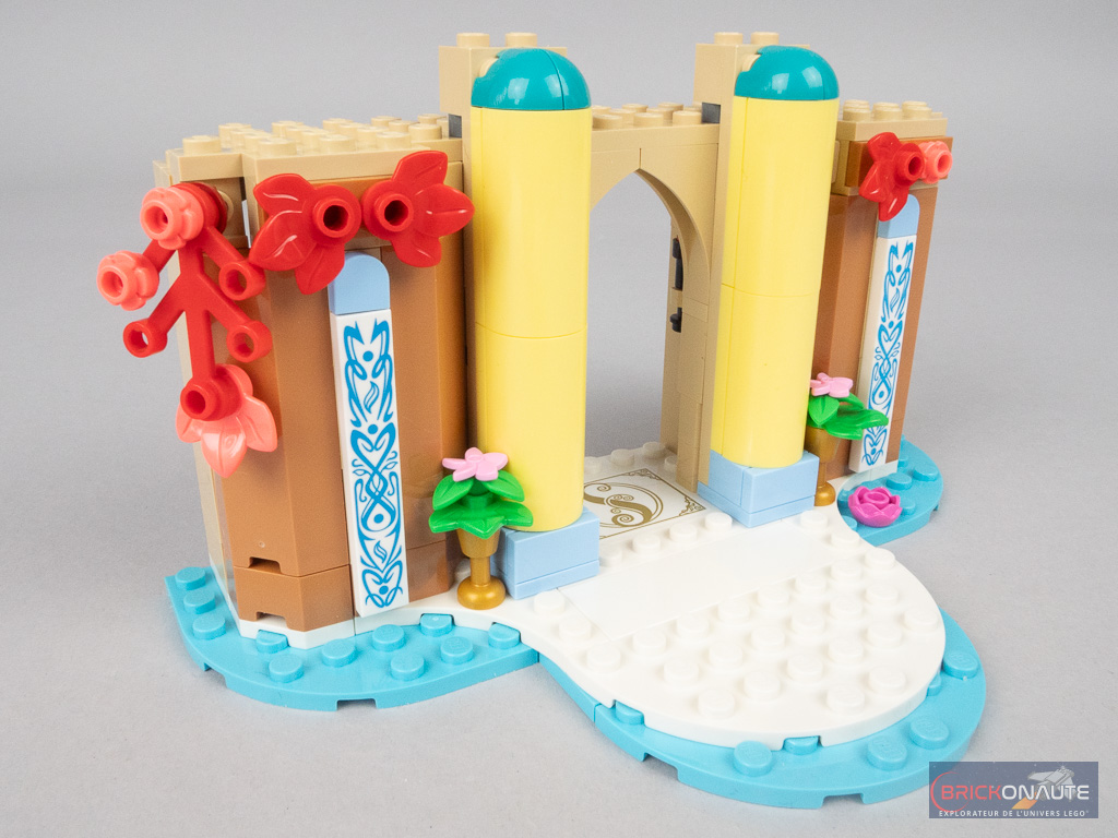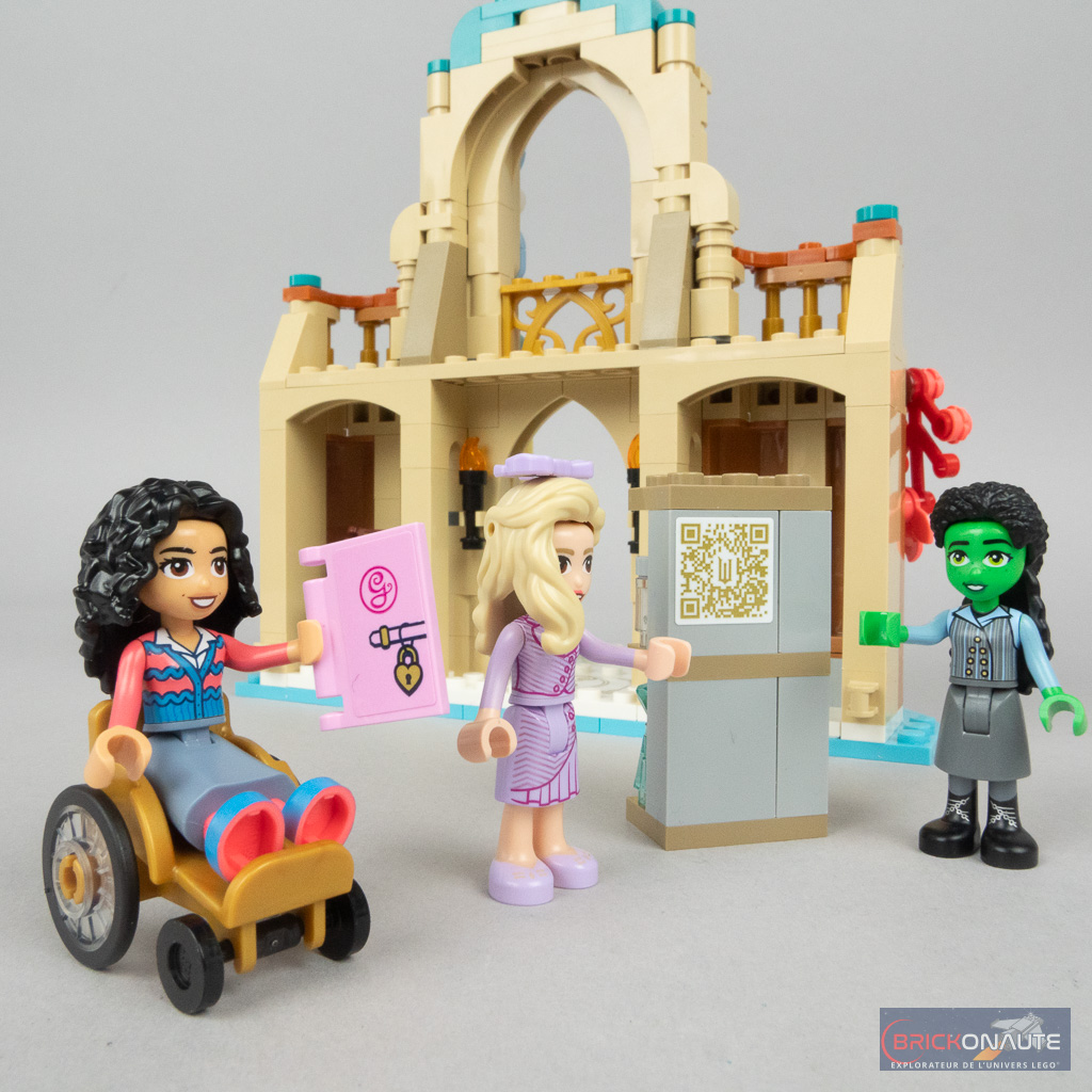La construction « principale » du set est l’entrée de l’université de Shiz, on l’aperçoit brièvement au tout début de la bande-annonce. C’est plutôt simple dans la conception, avec de grands panneaux et quelques briques SNOT pour apporter un peu de détail à la façade extérieure. Côté intérieur, il n’y a pas grand-chose à se mettre sous la dent si ce n’est une petite étagère de potions (avec un QR code à scanner à l’arrière) et un pupitre.