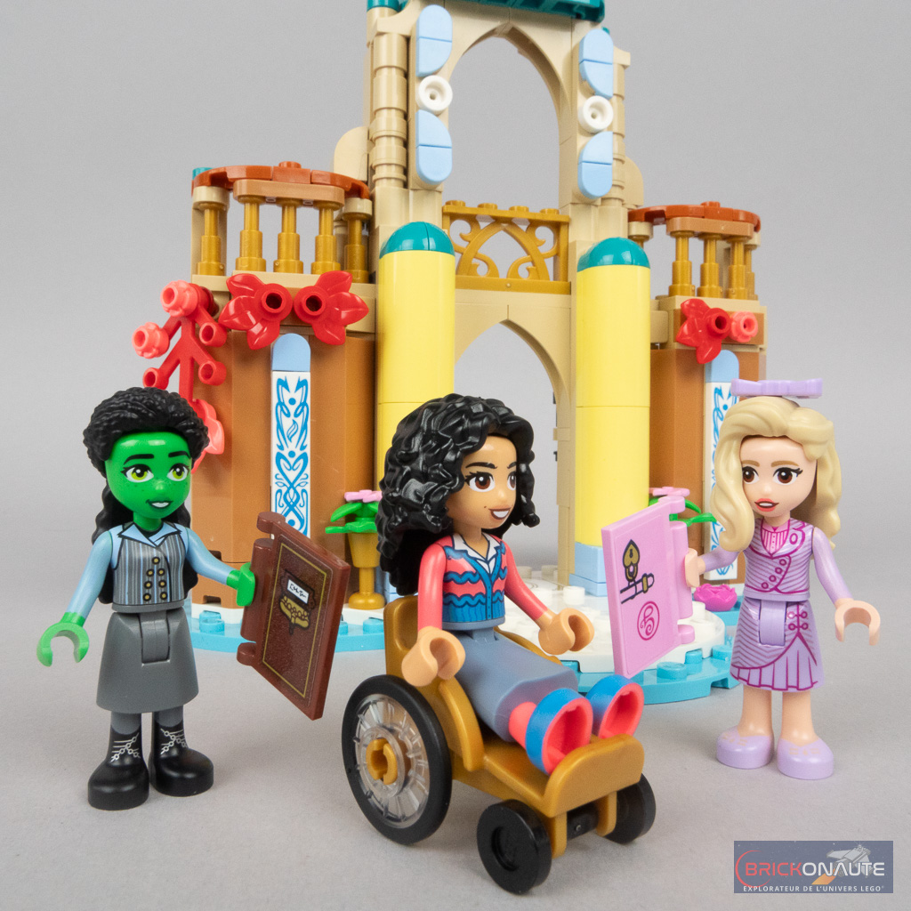 Du côté des minidolls, on retrouve de nouveau Glinda et Elphaba, dans des tenues inédites. Il est d’ailleurs intéressant de noter que toutes les tenues proposées dans toutes les boîtes de cette gamme LEGO Wicked sont différentes, un bel effort de la part de LEGO qui devrait intéresser les collectionneurs fans de la licence. La dernière sorcière est Nessarose, qui se déplace dans un fauteuil roulant pearl gold – un élément inédit dans cette couleur.