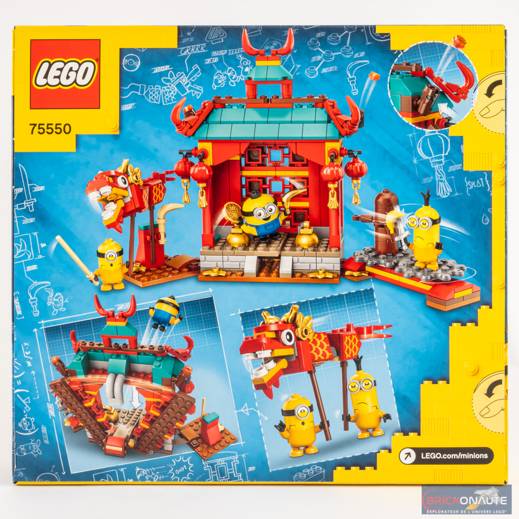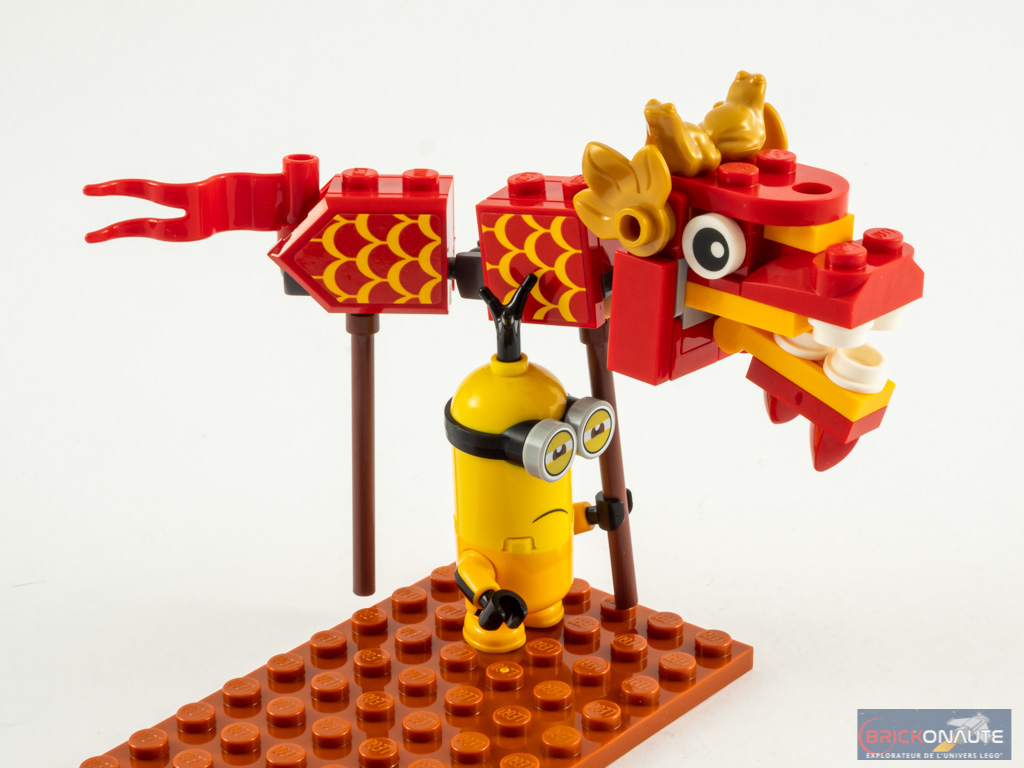 LEGO nous propose ici un set mélangeant deux univers : la loufoquerie des Minions, et la culture chinoise traditionnelle avec une portion de temple et un dragon. Et il faut bien dire que c’est réussi, à commencer par le design de l’ensemble : le temple est vraiment joli tant au niveau des couleurs choisies que du niveau de détails tout à fait satisfaisant. Le dragon est également sympathique, on regrettera juste la couleur grise des articulations.