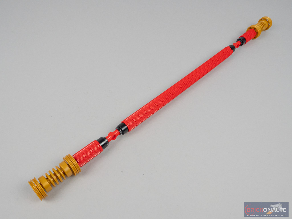 On ouvre alors le quinzième et dernier sachet de pièces pour une construction qui, personnellement, m’aura pris environ 4 heures. On y assemble tout d’abord deux grandes « ailes » nuageuses, formés d’une grande pièce souple venant se fixer sur une armature Technic. Dommage car vu de dos, ce n’est pas très beau. On assemble enfin le bâton dont la structure n’est autre qu’un grand axe Technic, avant de le mettre dans les mains de notre robot.