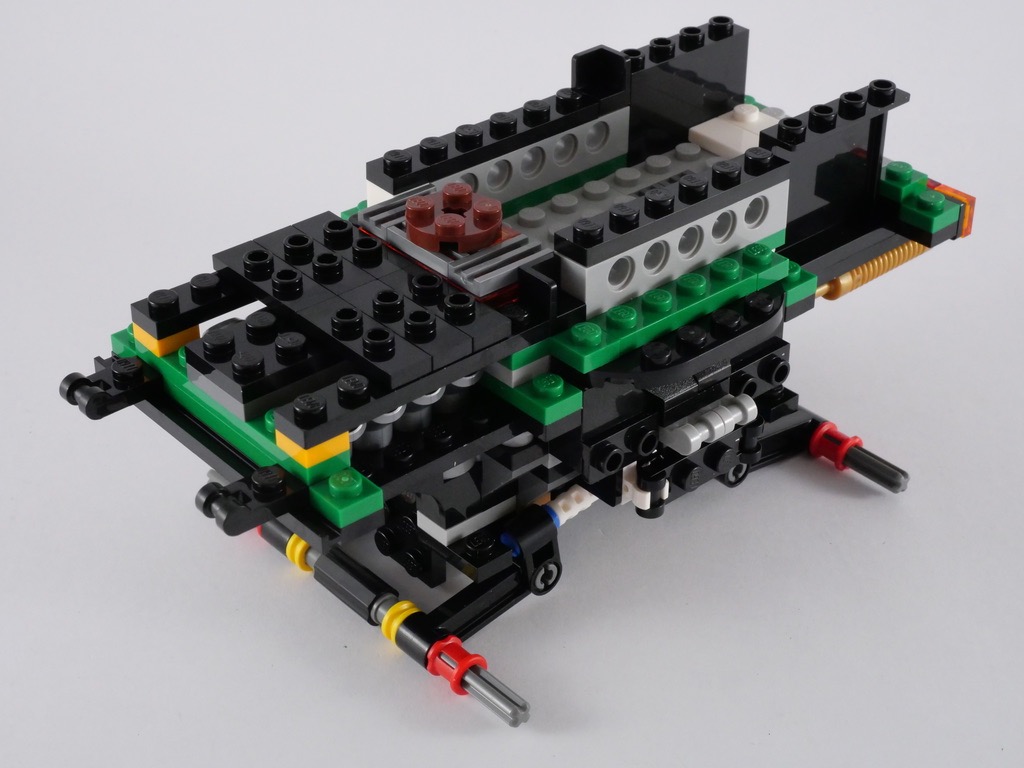 Je vais évoquer ici rapidement ces deux constructions alternatives. La première nous propose la construction d’un tout-terrain sans toit, clairement destiné à arpenter les rues ensoleillées de Californie ou des Antilles. Le second nous propose un « tracteur puissant » comme décrit sur la boutique officielle en ligne. Il me fait plutôt penser à un tracteur pulling, cette discipline confrontant d’énormes machines devant tirer une remorque sur une centaine de mètres. Certaines machines atteignent les 12 000 chevaux ! Bref, ce sont deux modèles originaux (surtout le deuxième), mais qui auraient pu bénéficier d’un niveau de détail bien supérieur si le riche inventaire du set avait été mieux mis à contribution.