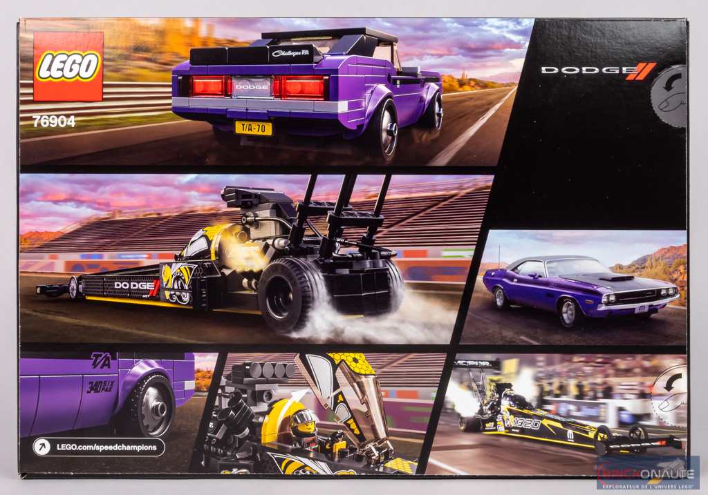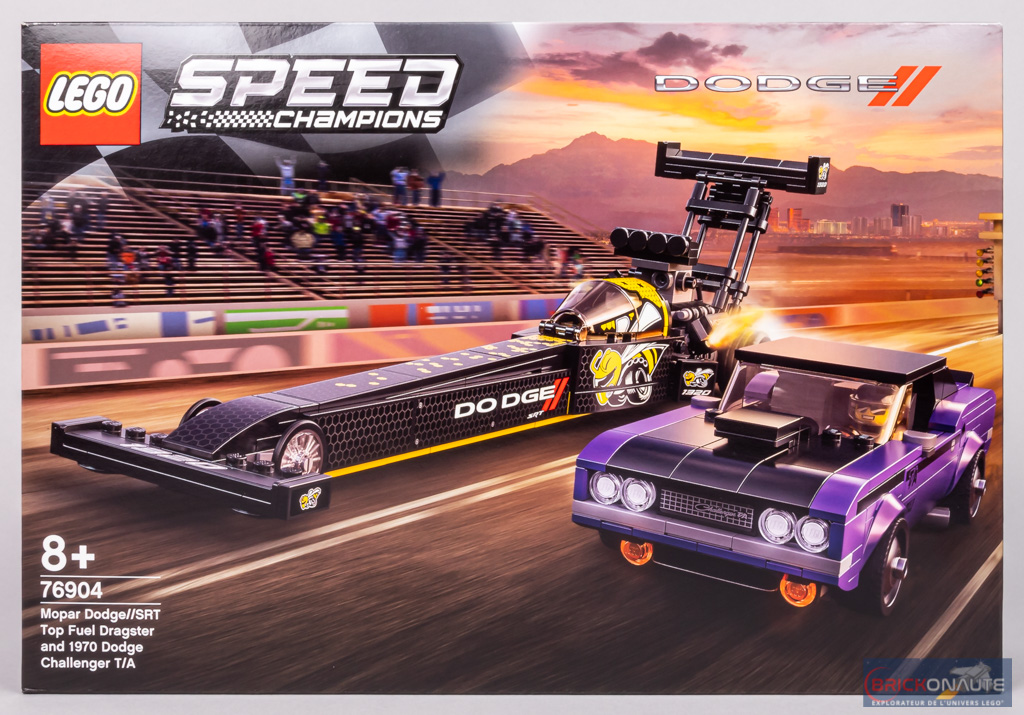 On continue notre tour d’horizon des nouveautés 2021 de la gamme LEGO Speed Champions, avec un set au nom plutôt long : la référence 76904 Mopar Dodge//SRT Top Fuel Dragster and 1970 Dodge Challenger T/A. Un set qui nous propose donc un dragster (et plus précisément l’Angry Bee piloté par Leah Pritchett en NHRA – la fédération régissant les courses de dragsters aux USA et au Canada) et une voiture plus ancienne avec la Dodge Challenger T/A de 1970, qui fut en son temps une voiture d’homologation de course.