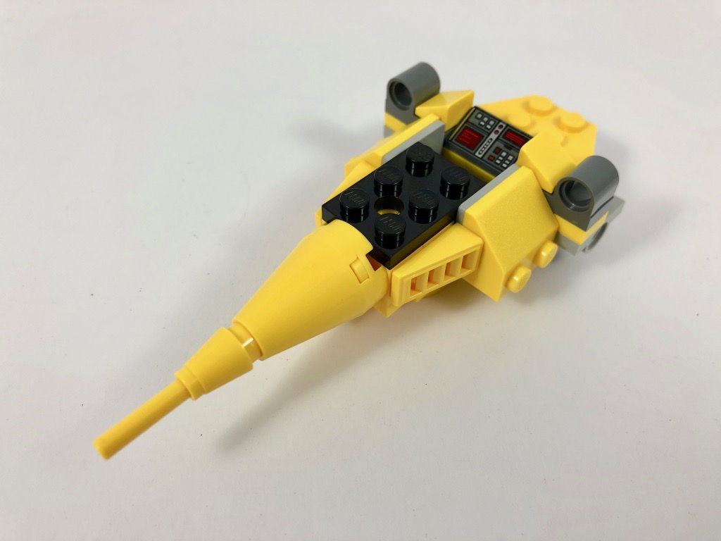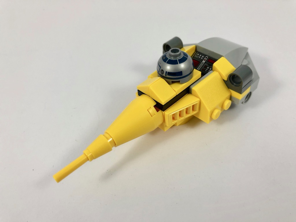 Pour 9,99 €, LEGO nous propose une interprétation mignonne du vaisseau vu dans La Menace Fantôme. Les couleurs sont bien choisies, et on retrouve le look chibi caractéristique des Microfighters.