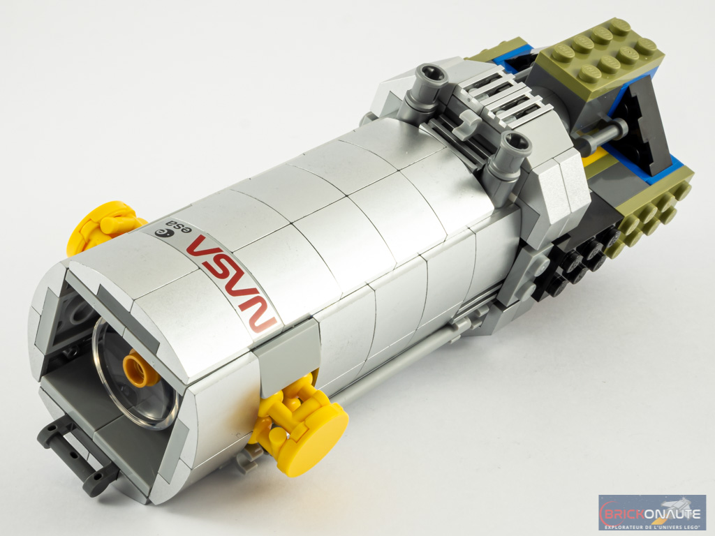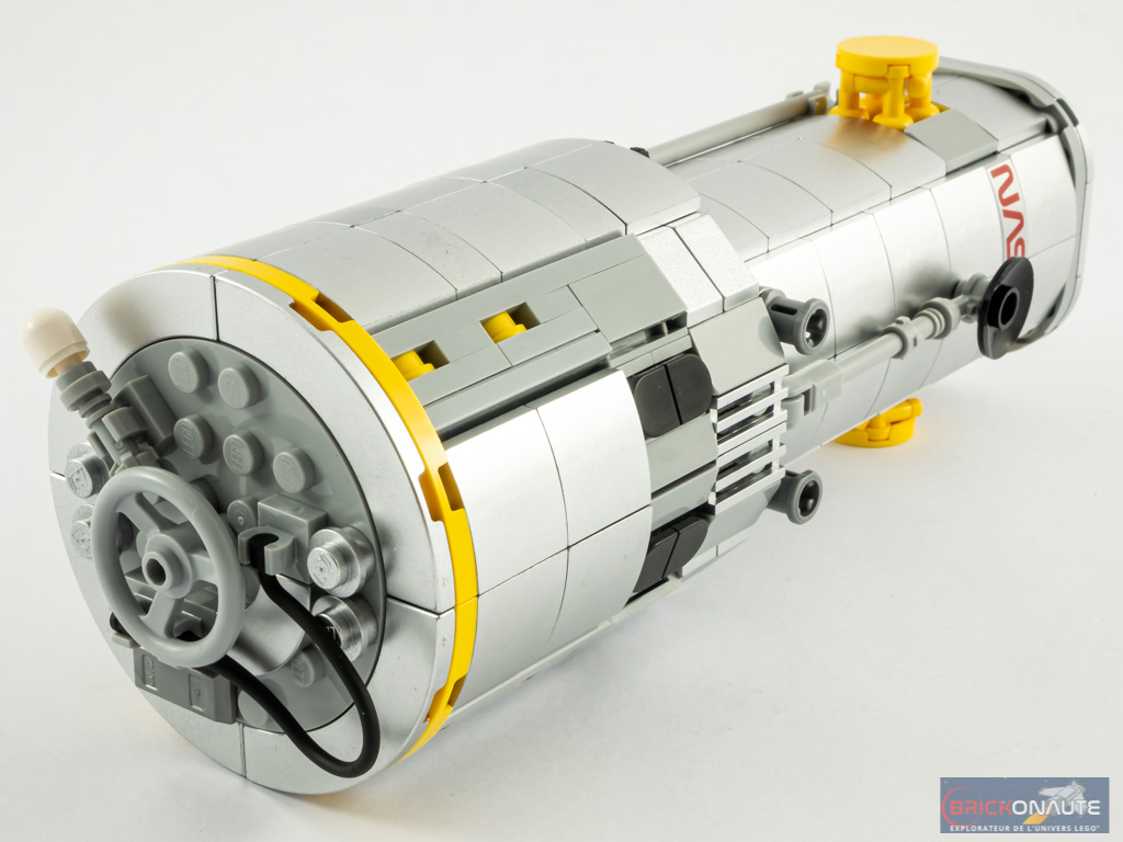 Le support d’exposition est construit sur le même principe que celui d’Hubble, à la différence près que celui-ci est nettement plus imposant. On retrouve une structure Technic et quelques brackets permettent d’habiller l’extérieur pour un aspect final très sobre et presque « élégant ». Dommage qu’il subsiste quelques tenons visibles.